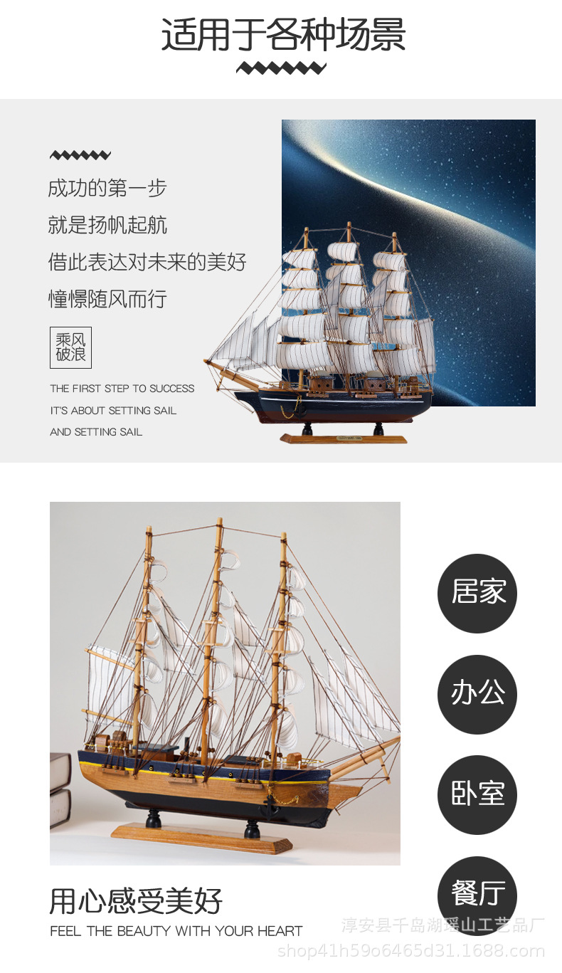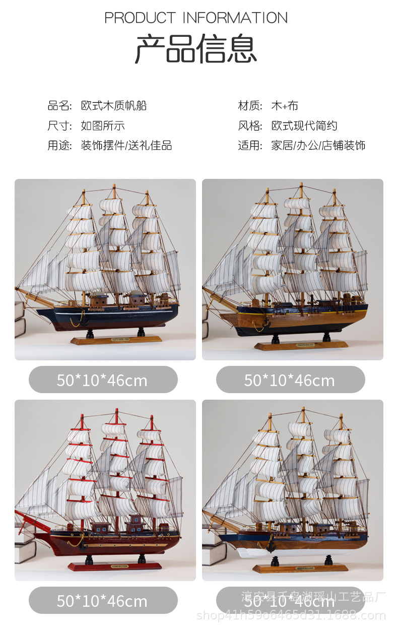 70cmヨット置物大型模型寝室玄関置物順風満帆木製工芸品ソフト装飾品