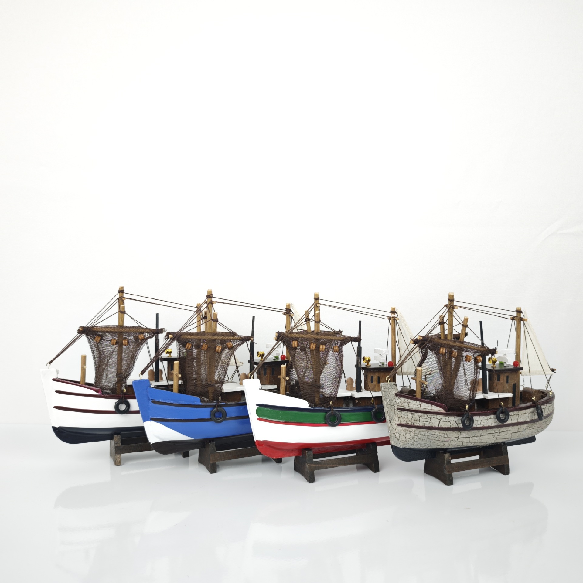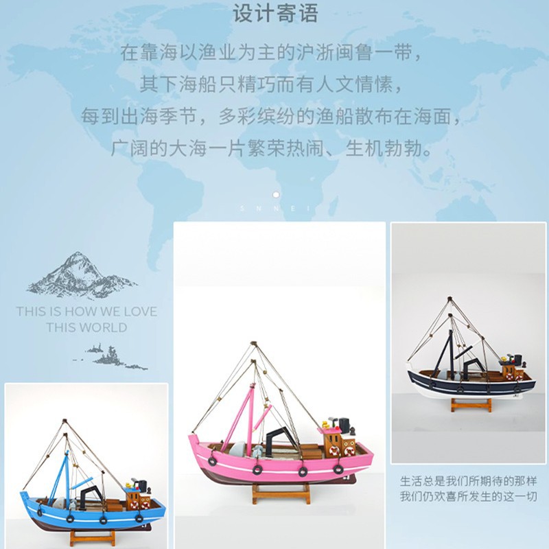 クリエイティブなホームデコレーション、手作りの木製塗装漁船の装飾品、木製のギフト、工芸品、ホームアクセサリー