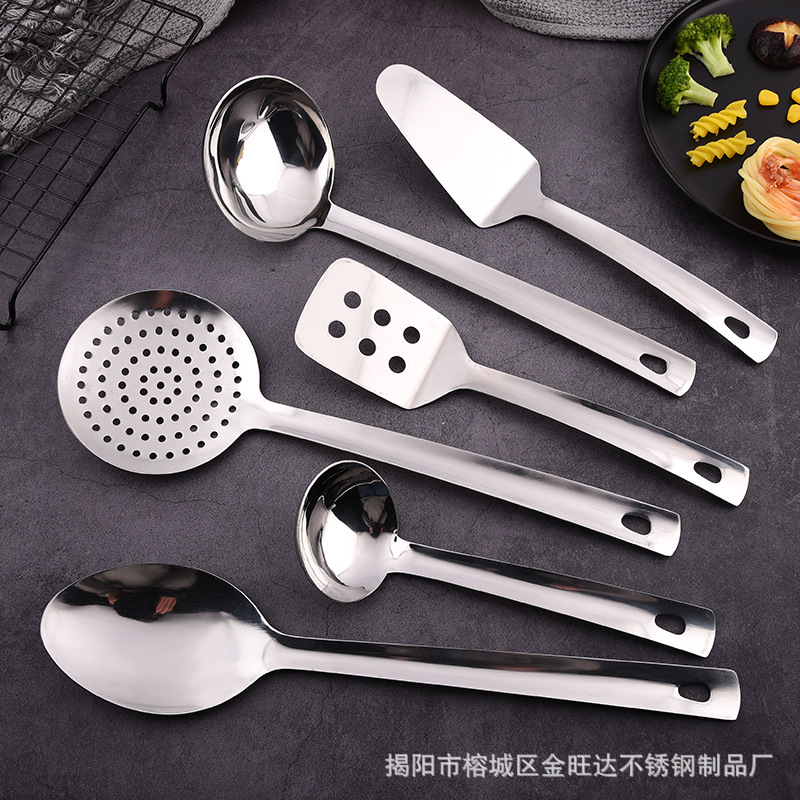 ステンレスの台所の鍋のシャベルのスプーンのシャベルのスプーンの台所の家庭用炒め物の6セットはロゴを決めることができます。