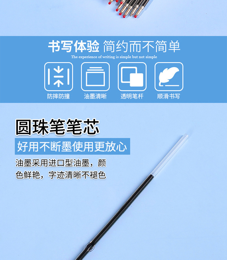 メーカーの卸売りはボールペンを押して芯の油性の0.7mm520ボールペンの芯の簡易事務の文房具の用品を置きます。