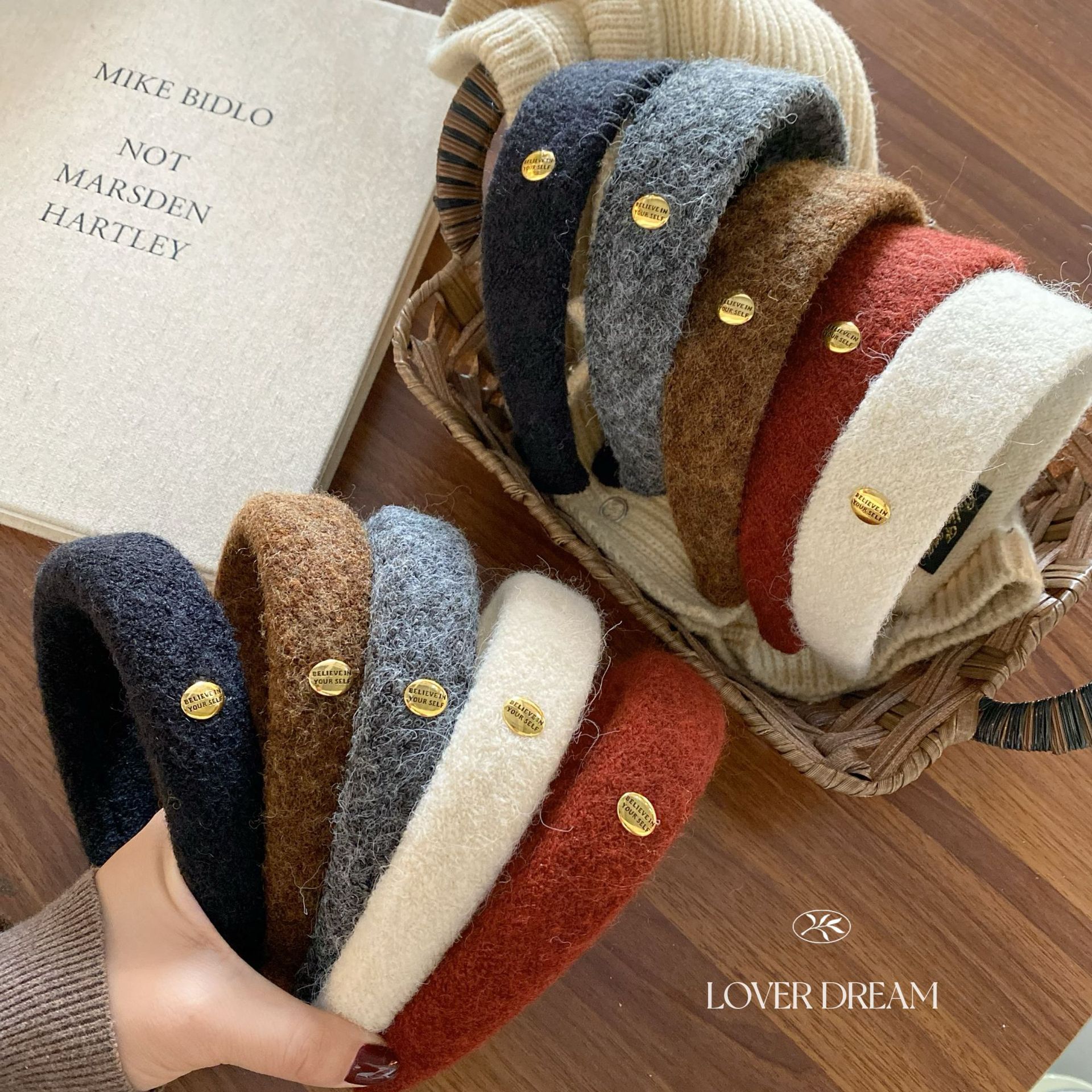 韓国ins秋冬新作ゴールドアルファベット毛糸ぬいぐるみカチューシャファッション高級感カチューシャ髪飾り女