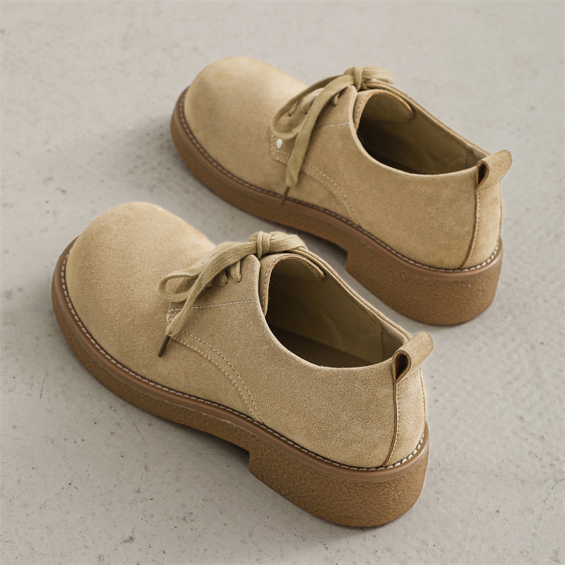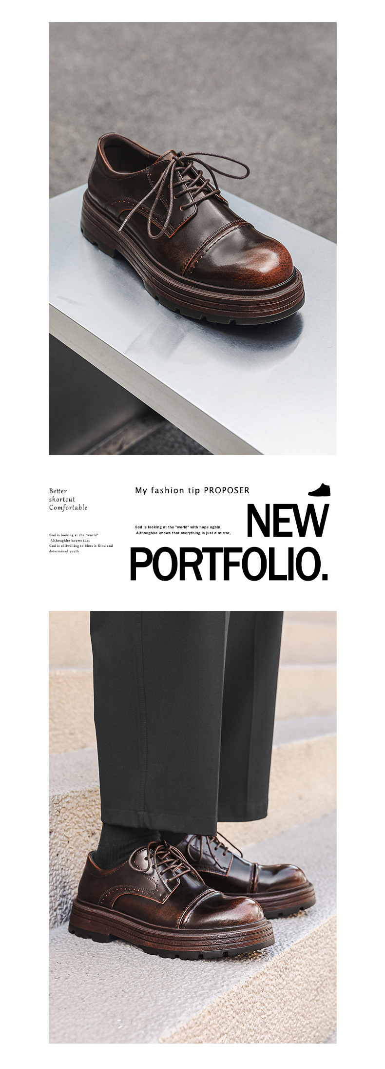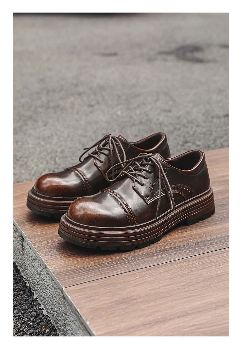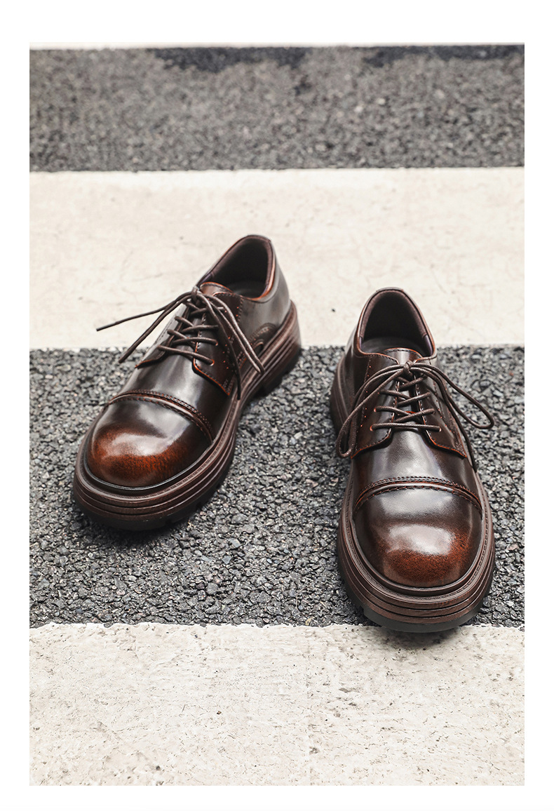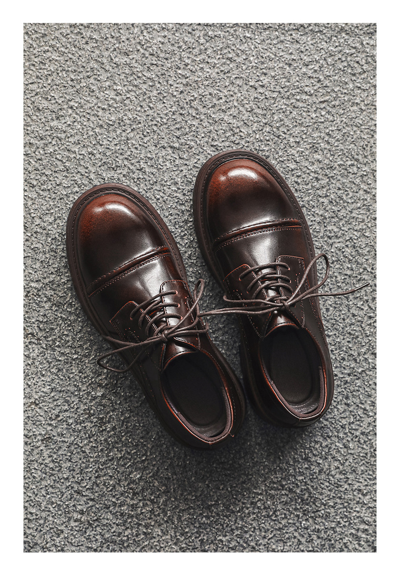 2025日系大头皮鞋低帮鞋复古做旧牛皮圆头休闲皮鞋手工厚底德比鞋