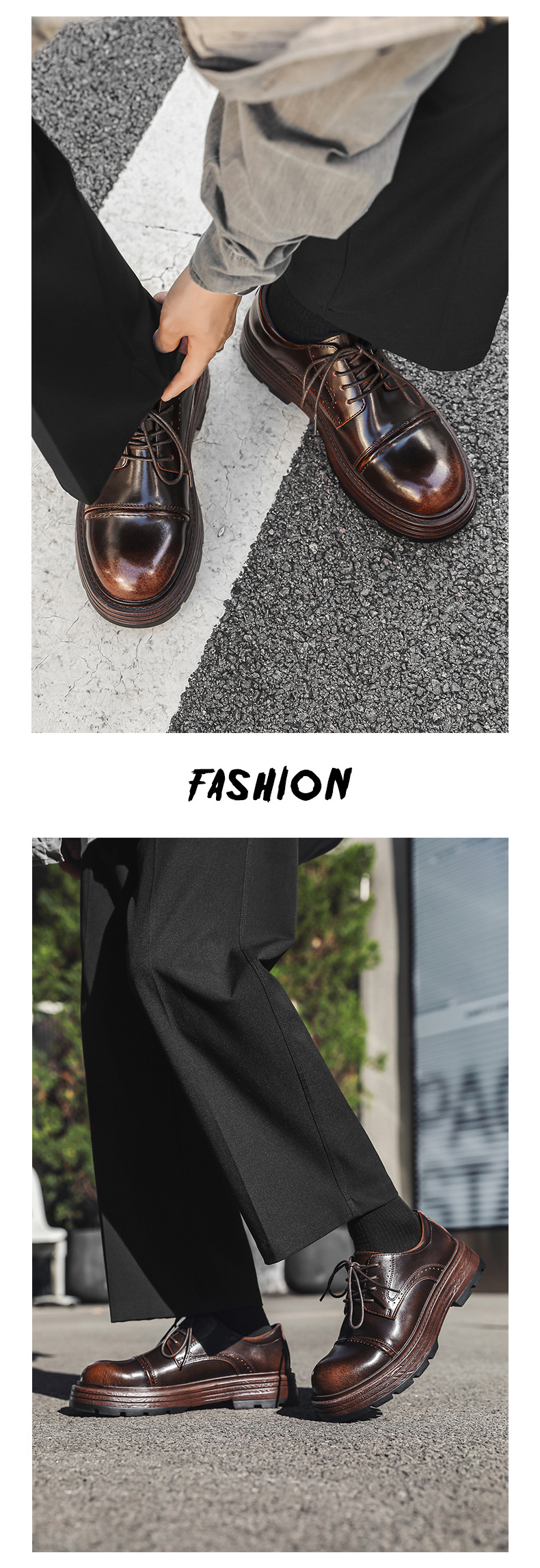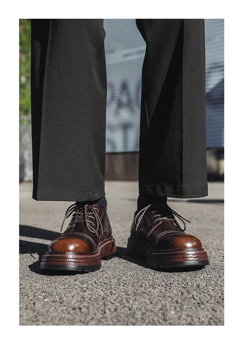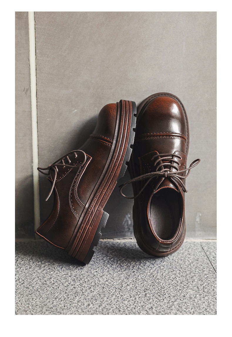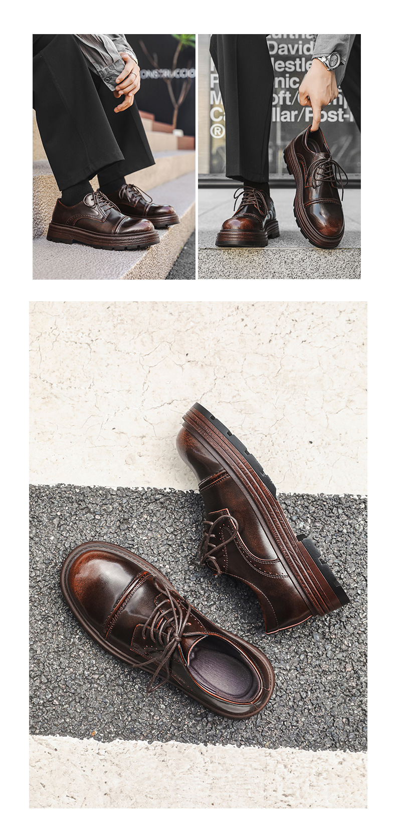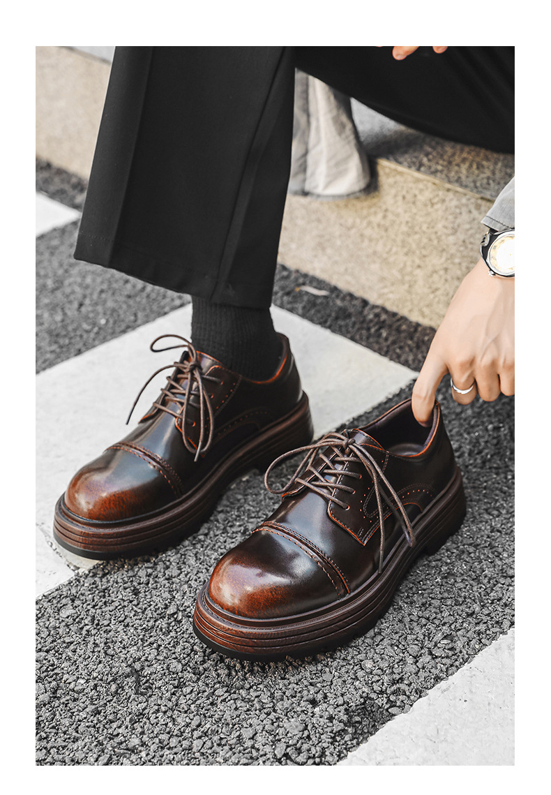 英倫風レトロカジュアル革靴男韓版潮流靴ビジネス正装百合ファッション厚い底ダービー靴