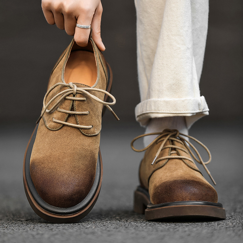 2026春季新品牛反绒皮工装鞋男欧美低帮潮流百搭休闲马丁靴3922