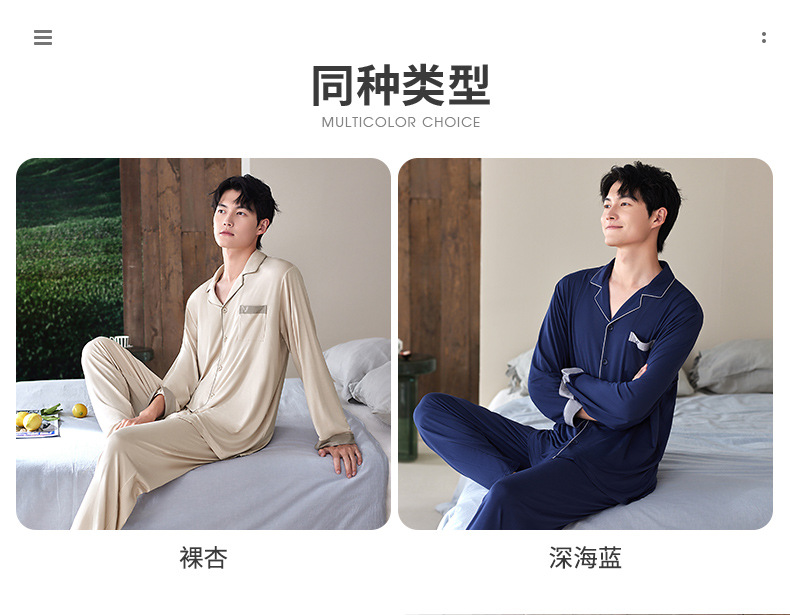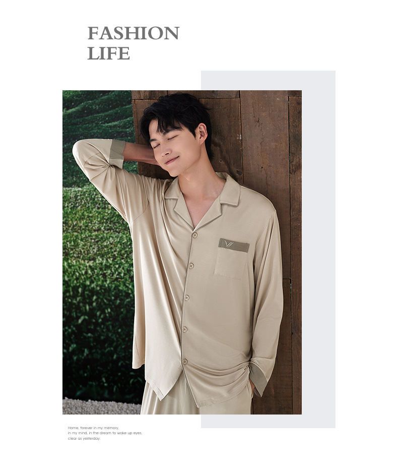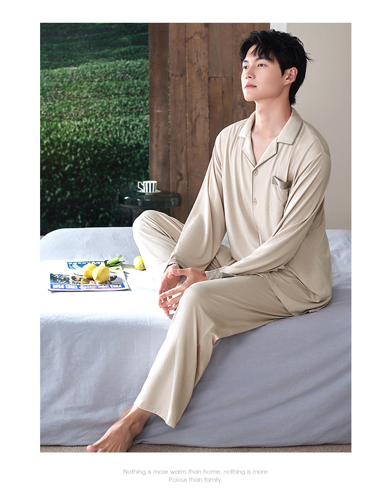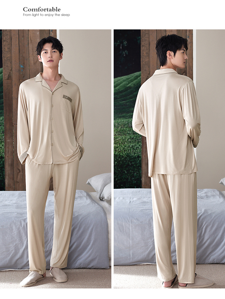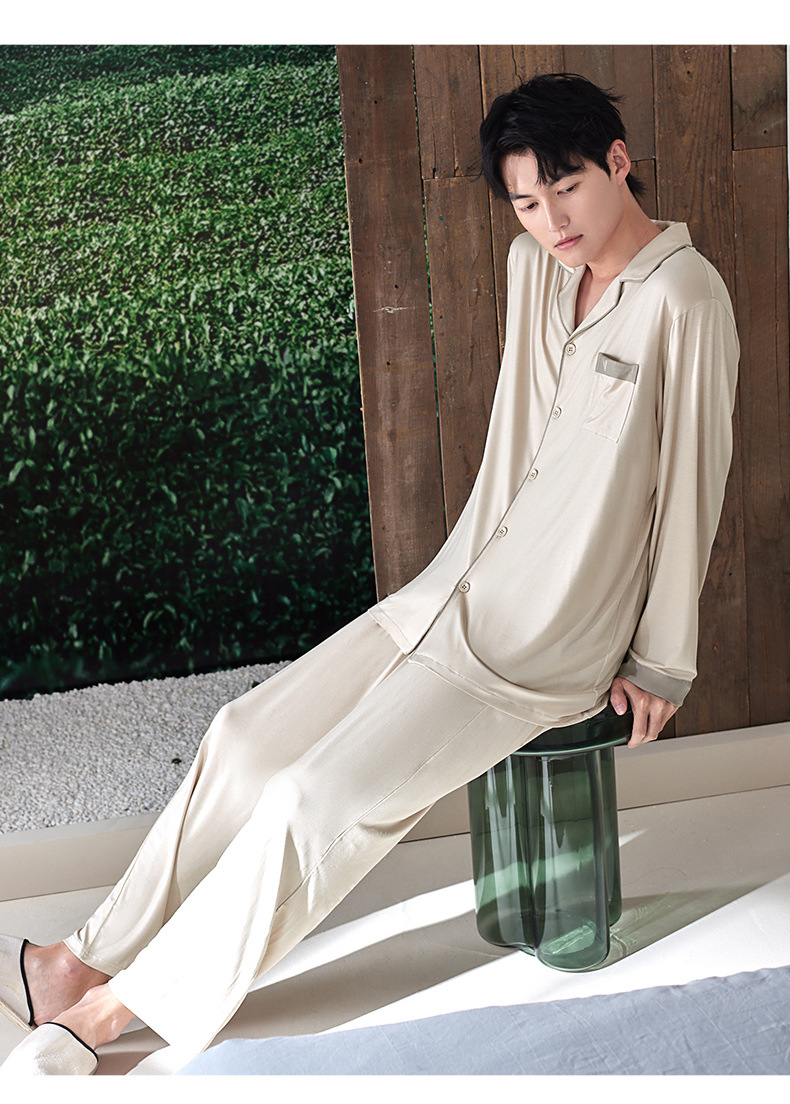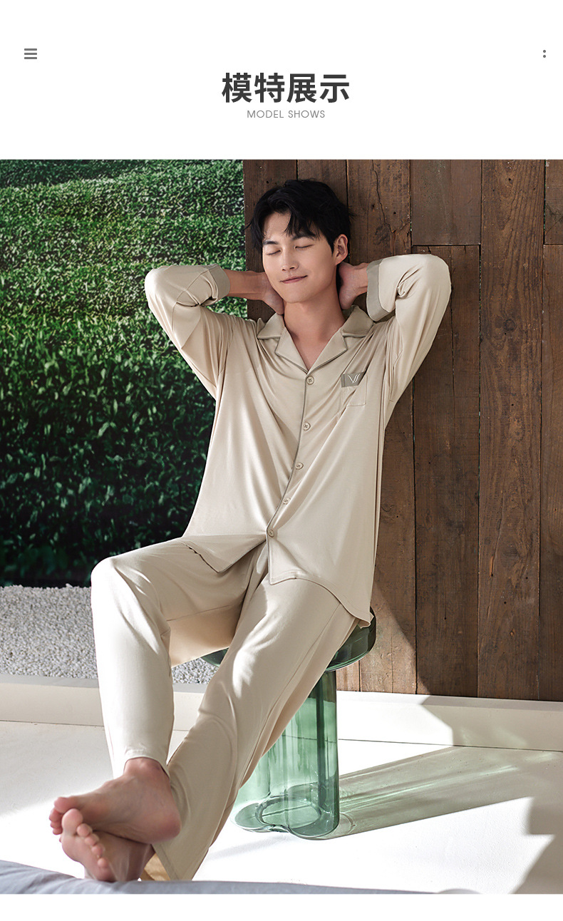 軒の美しい新商品の男性の部屋の服は襟のカーディガンの長袖のズボンのモーダルシンプルで外で2つのパジャマを着ることができます。