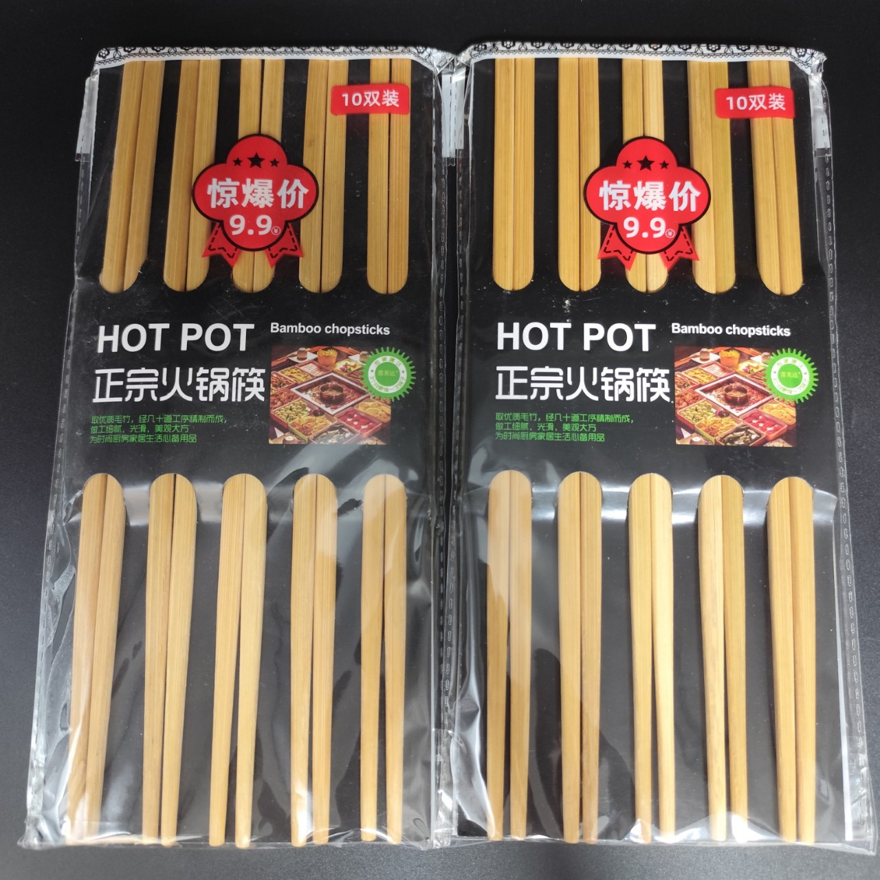 10膳セット 27cm火鍋箸 油浸箸 無塗装竹箸 2元店 屋台卸売