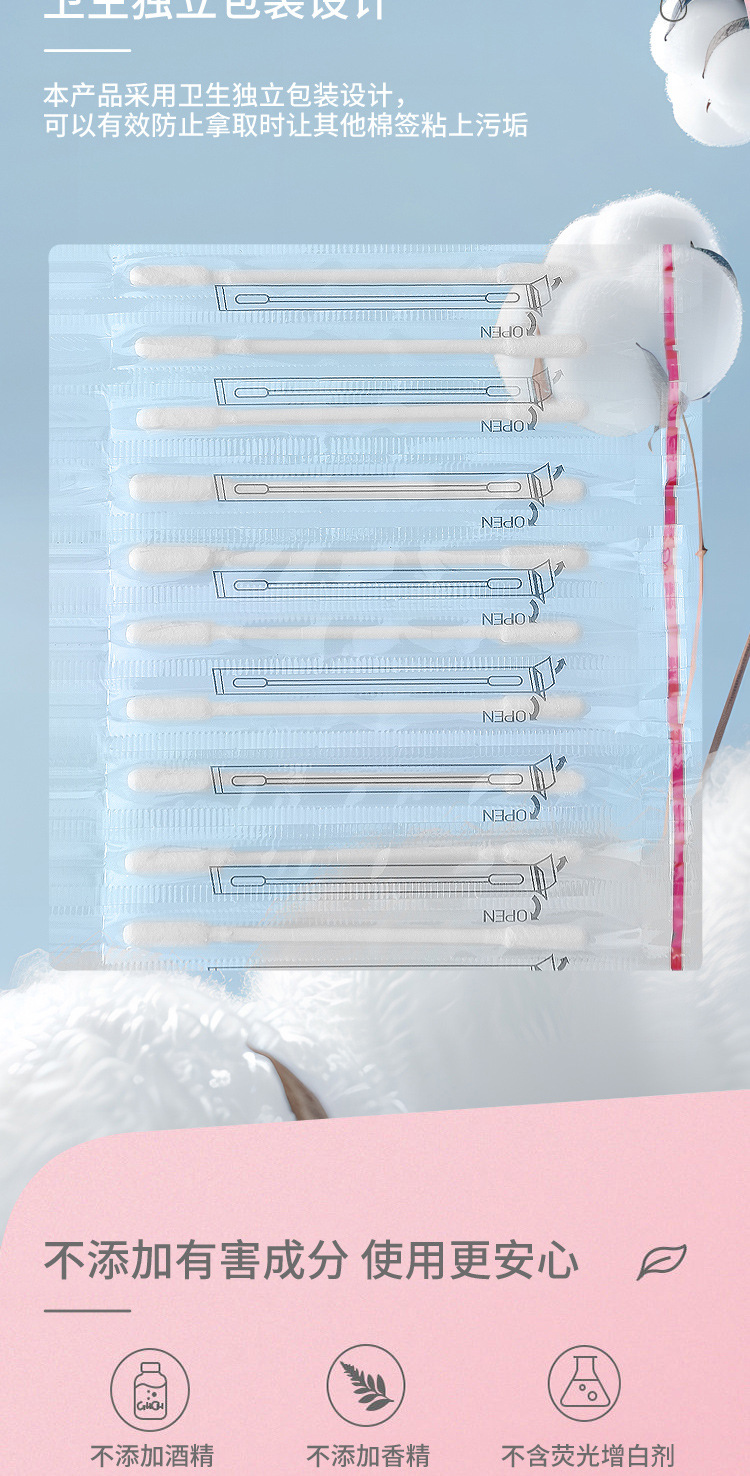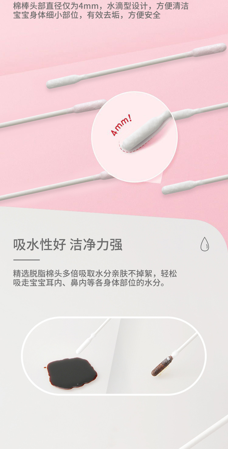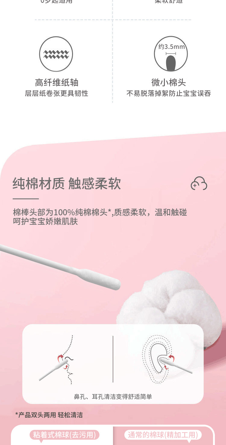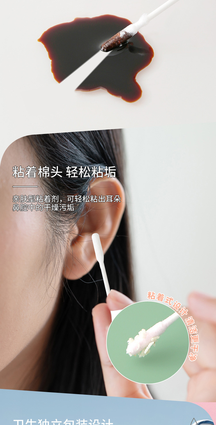 ベビー耳かき綿棒、粘着綿棒、個包装、子供用耳かき、耳垢クリーニング、薄紙軸綿棒