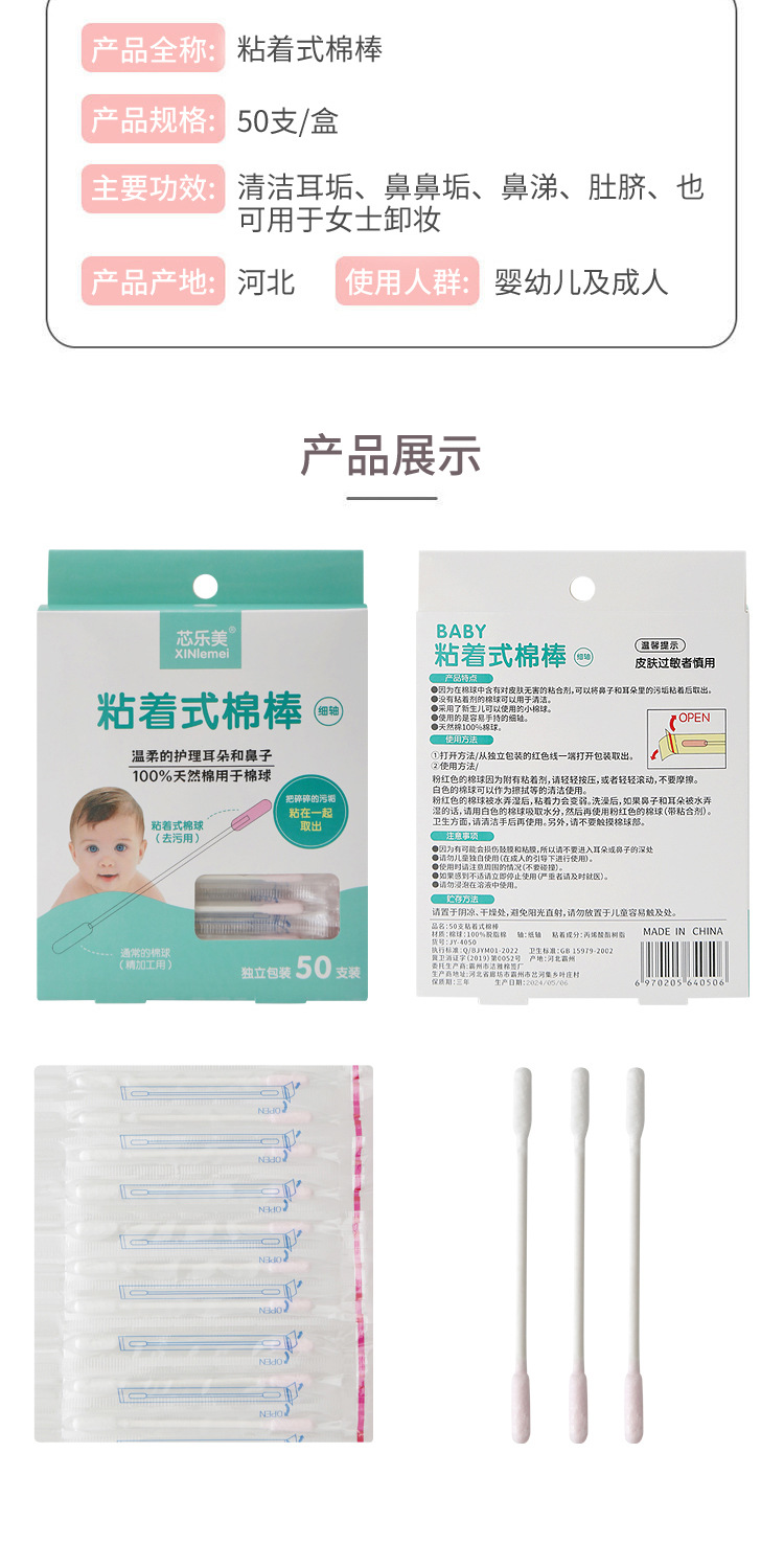 乳幼児用粘着式綿棒使い捨て粘着耳スプーン綿棒耳棒耳棒耳棒耳指スプーンケース50本
