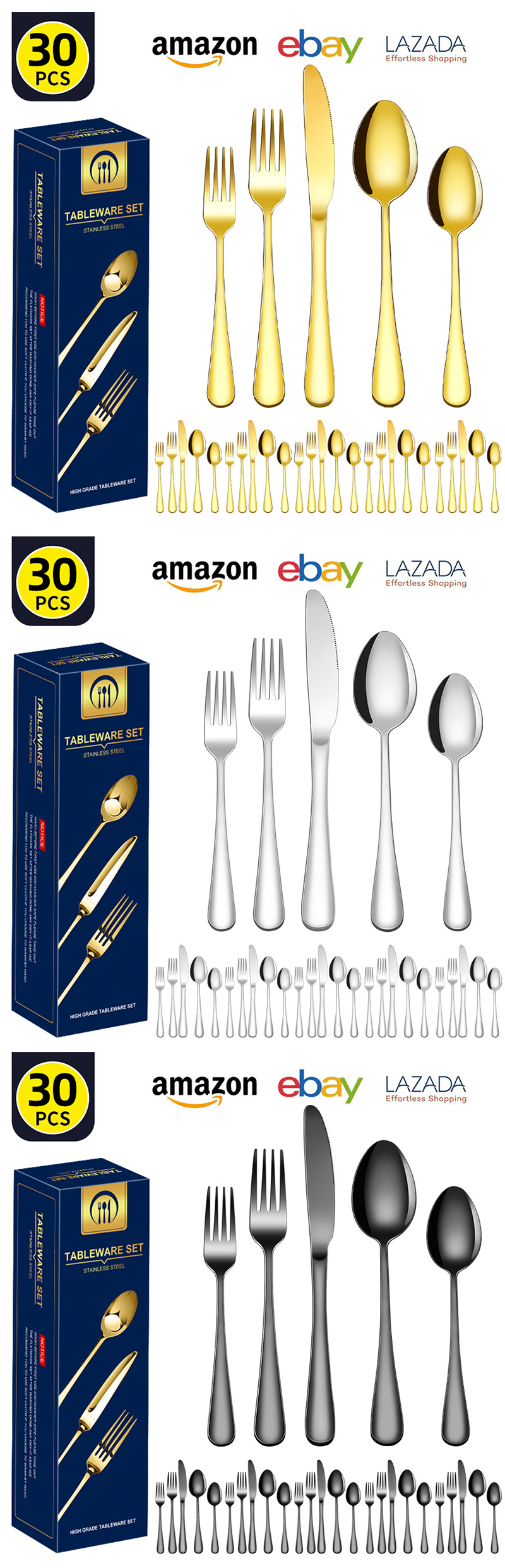 国境を越えたアマゾンポルトガルナイフフォークスプーン30点セットホテルステンレスステーキナイフフォークデザートスプーン
