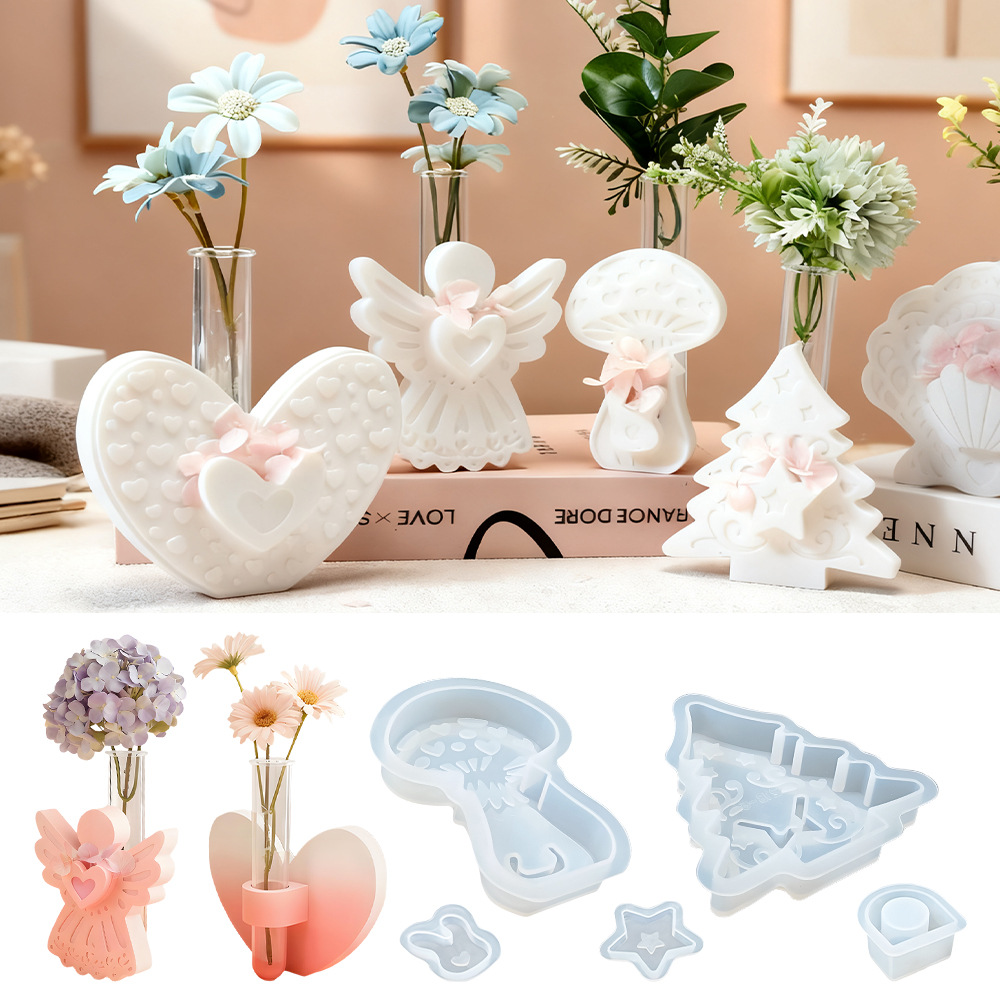 新品diy水晶滴胶花瓶模具爱心天使插花花瓶香薰石膏摆件硅胶模具