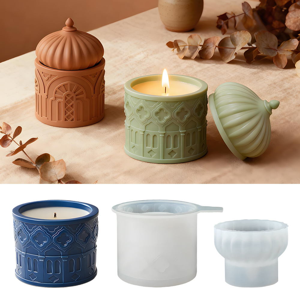 diy圆顶罐子滴胶模具浮雕花纹香薰蜡烛杯收纳盒装饰摆件硅胶模具