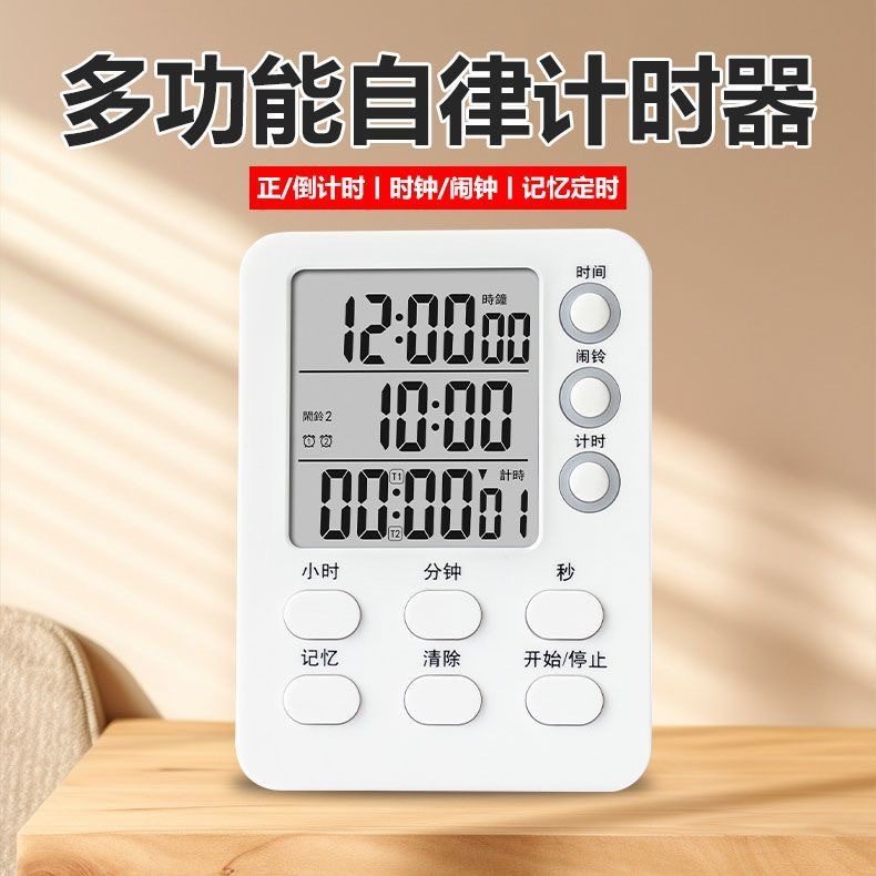 三通道计时器厨房烹饪提醒器学习时间管理器可静音大显示屏定时器
