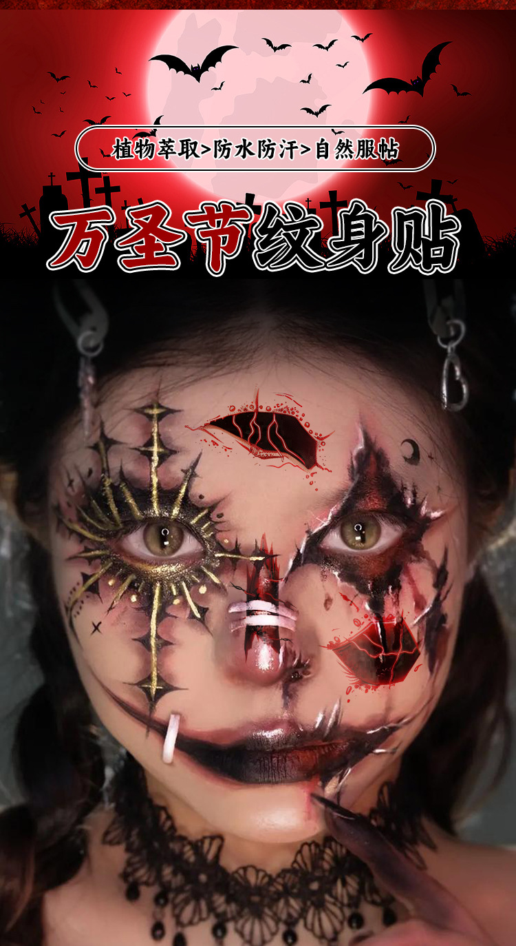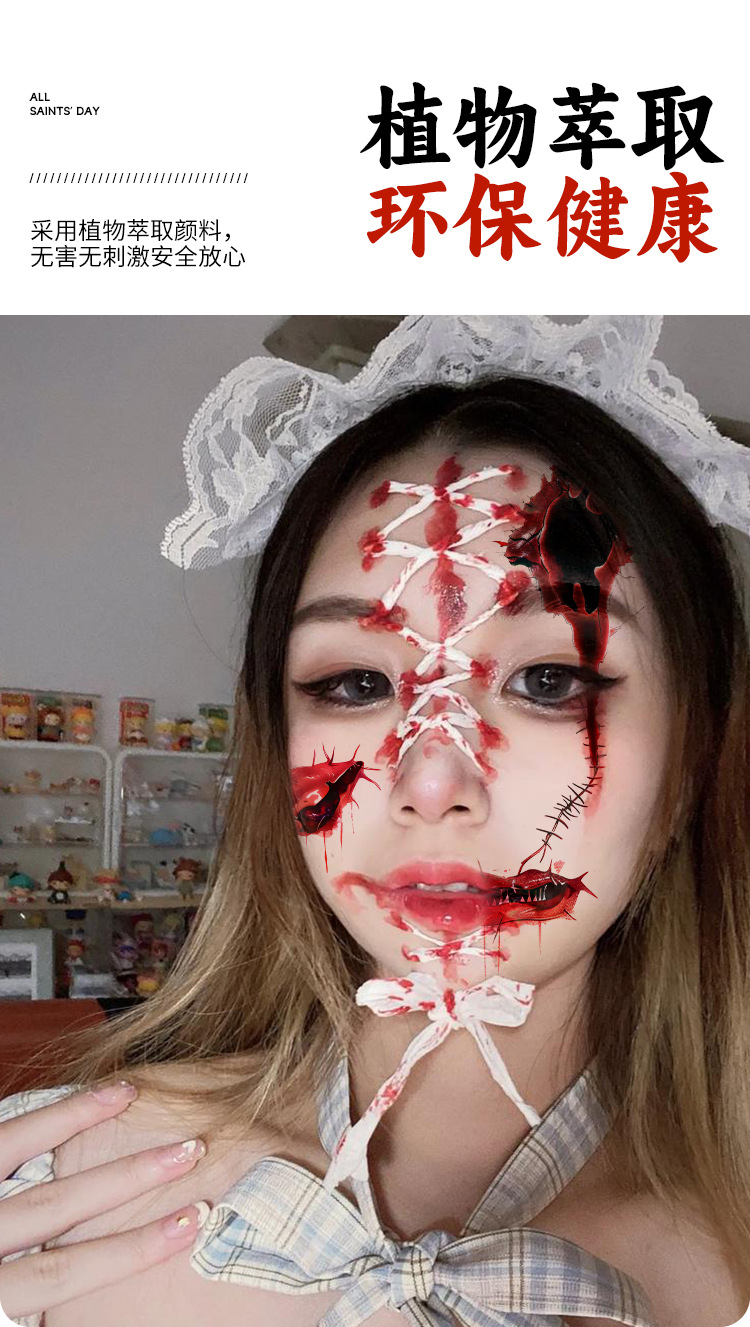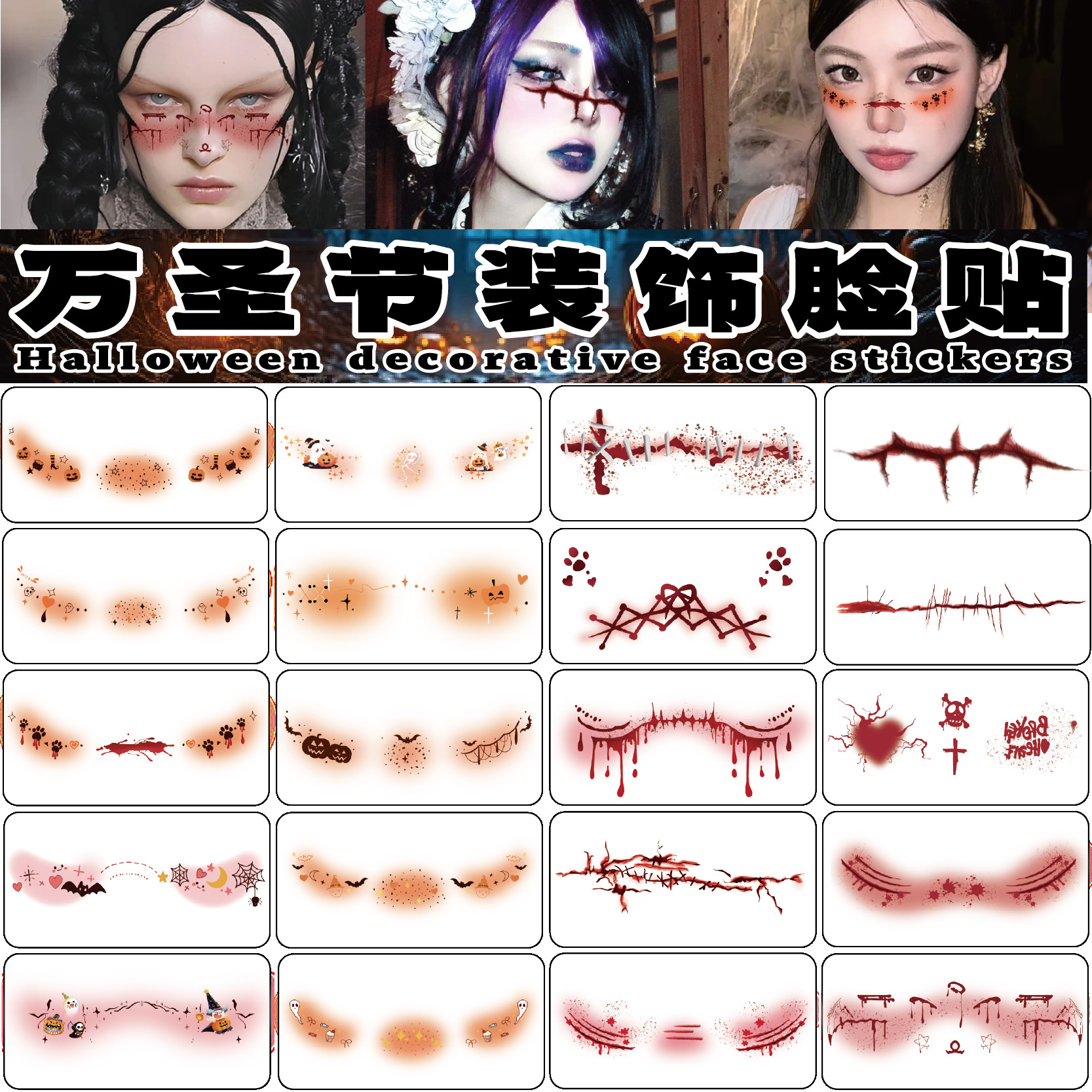 可爱少女脸部妆容创意万圣节纹身贴COS高颜值派对腮红血腥妆容贴