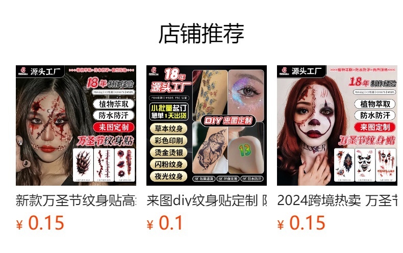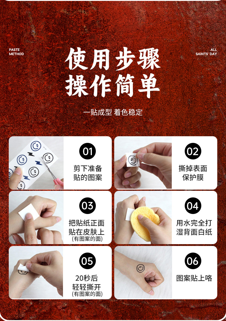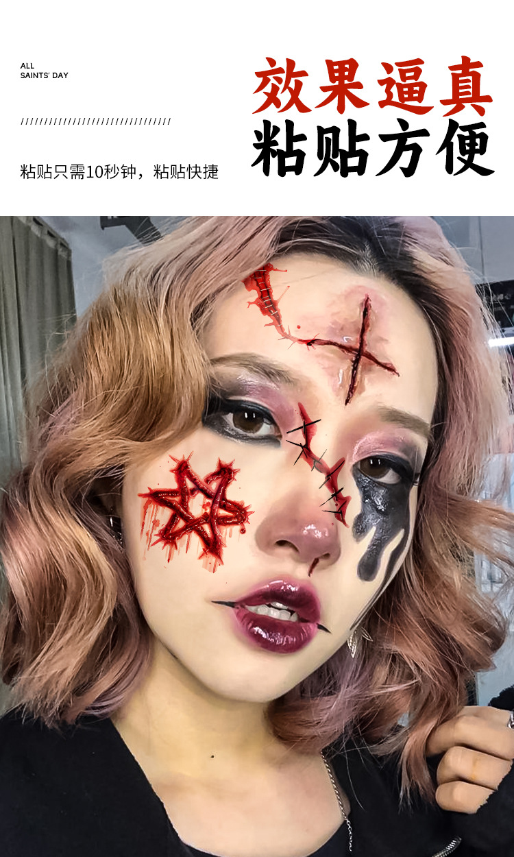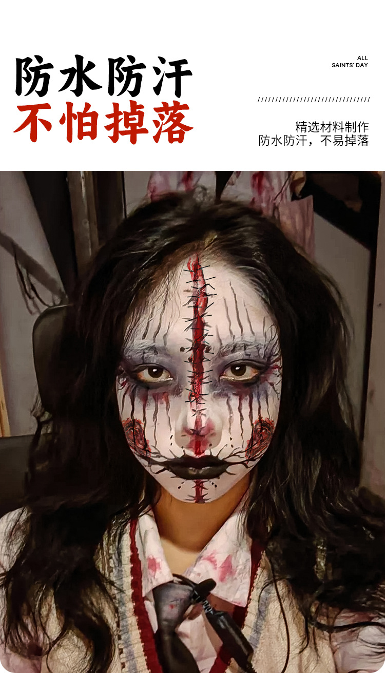 可爱少女脸部妆容创意万圣节纹身贴COS高颜值派对腮红血腥妆容贴