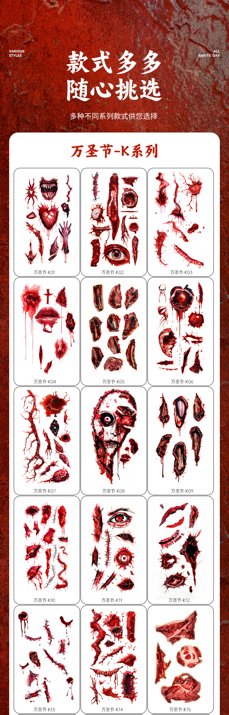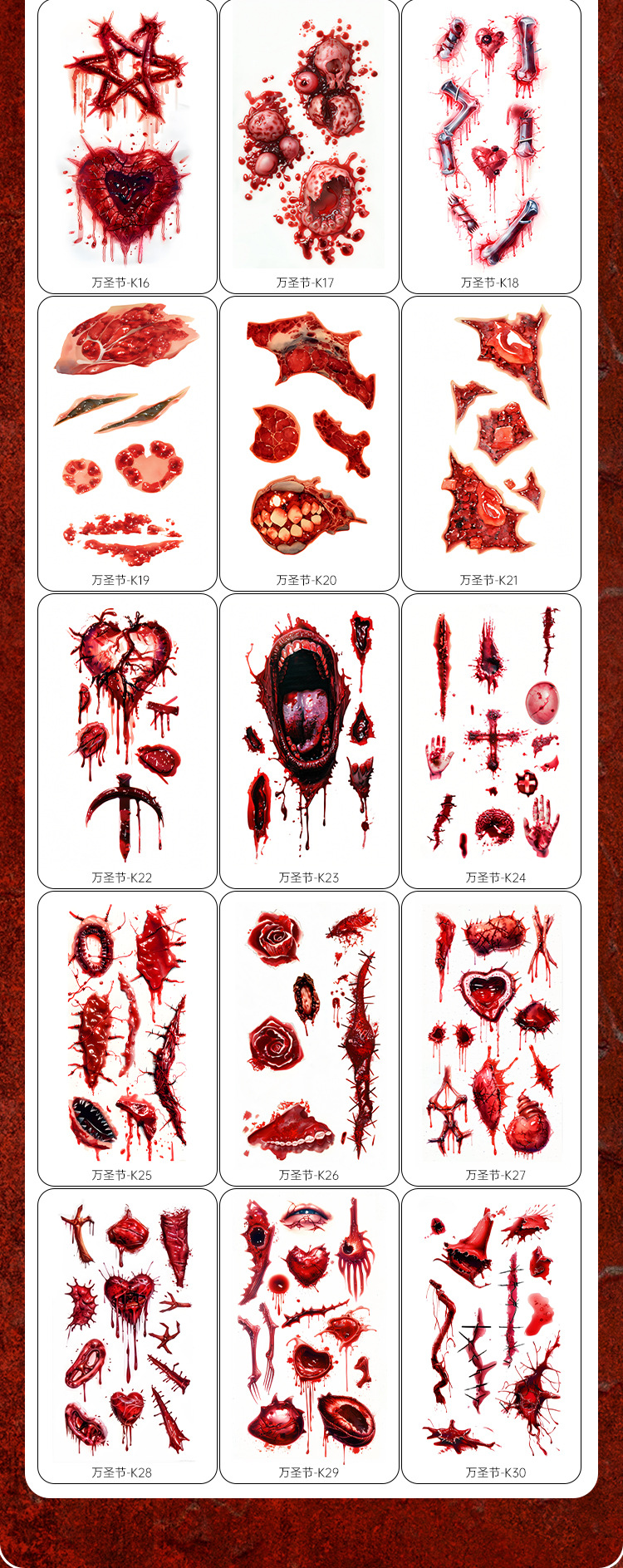 新型ハロウィーン傷跡タトゥー防水恐怖血なまぐさい傷パーティー臨時使い捨て防水タトゥー