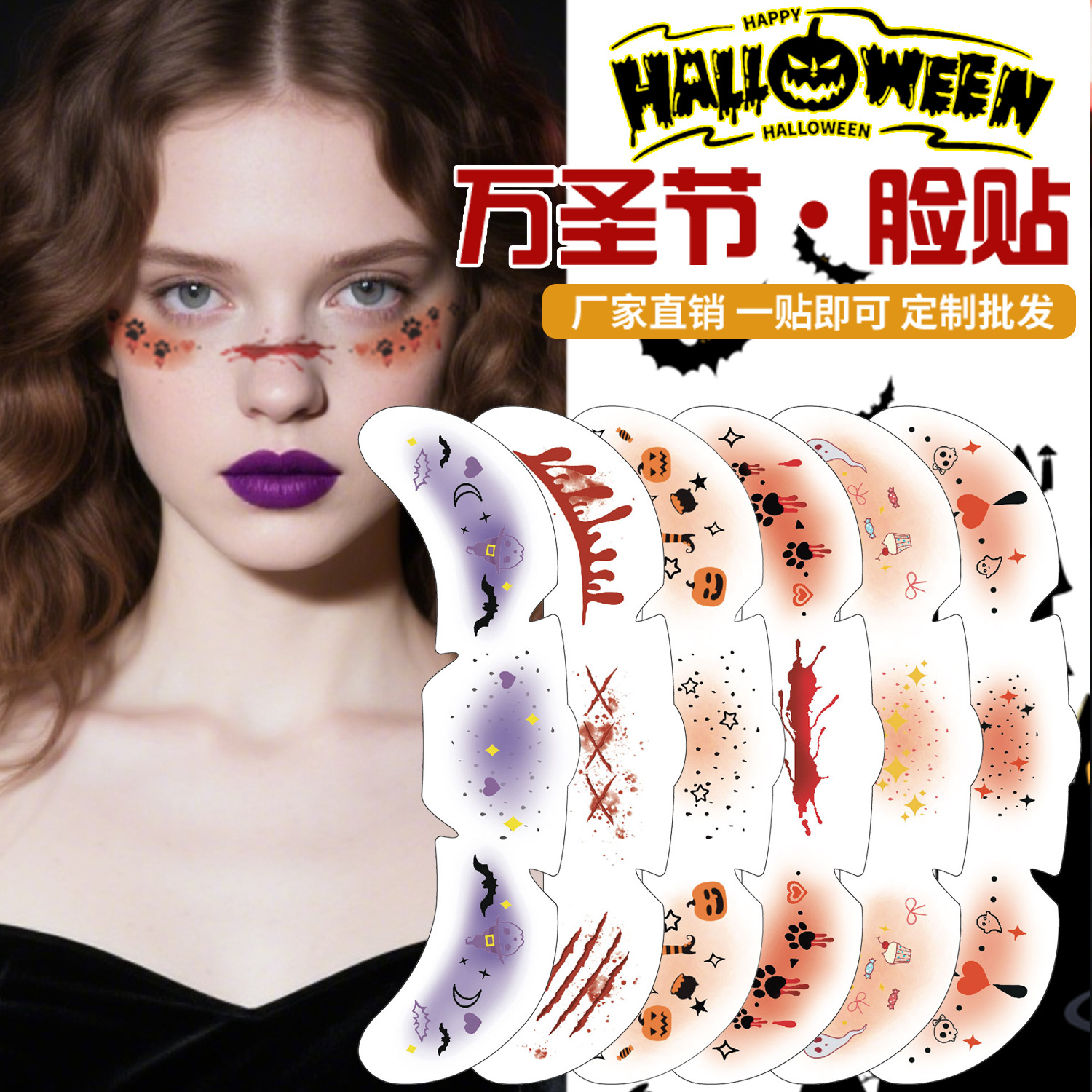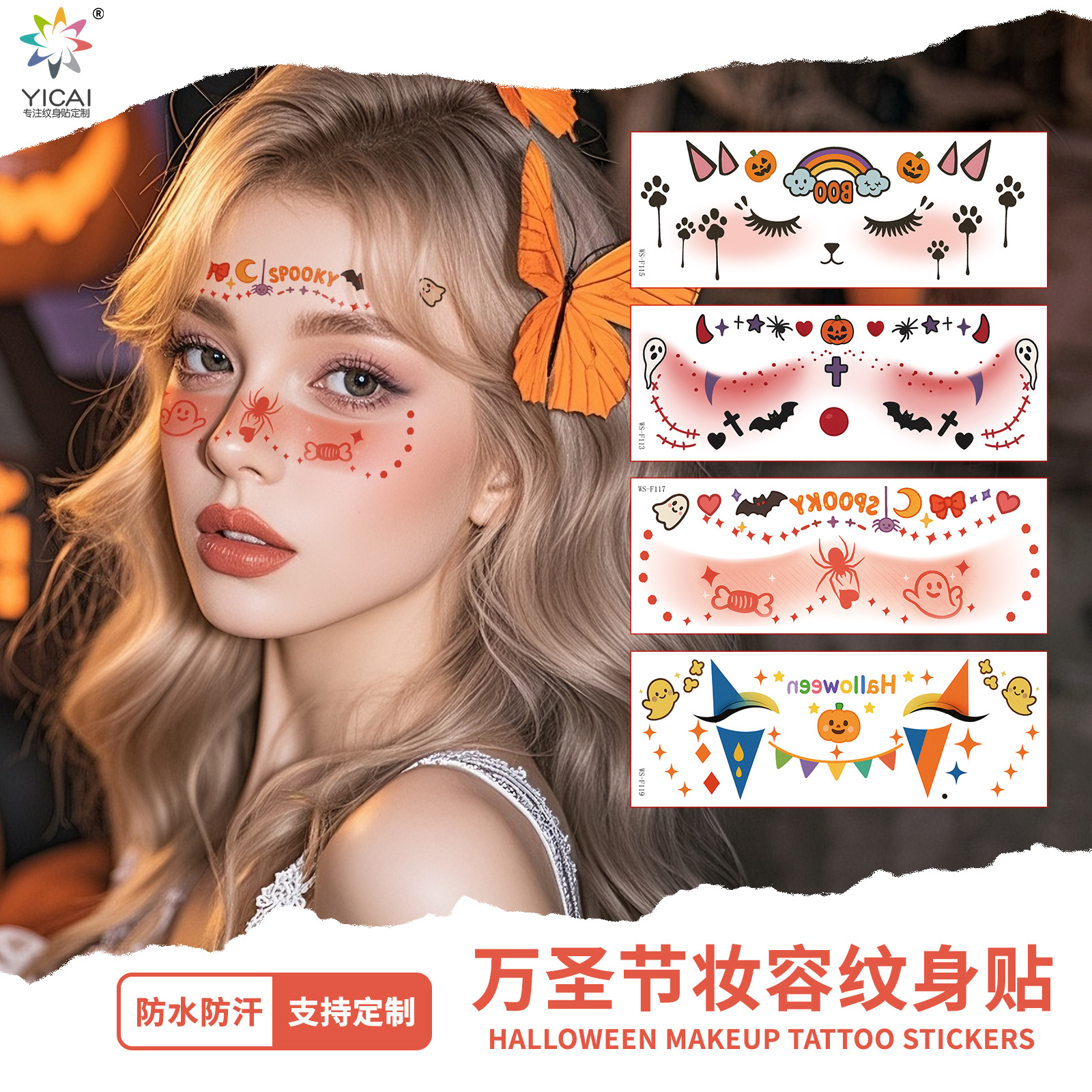クロスボーダー新しいハロウィンメイクアップフェイスステッカーかわいいゴーストメイクアップタトゥーステッカーパーティーパーティーステッカー防水汗タトゥー