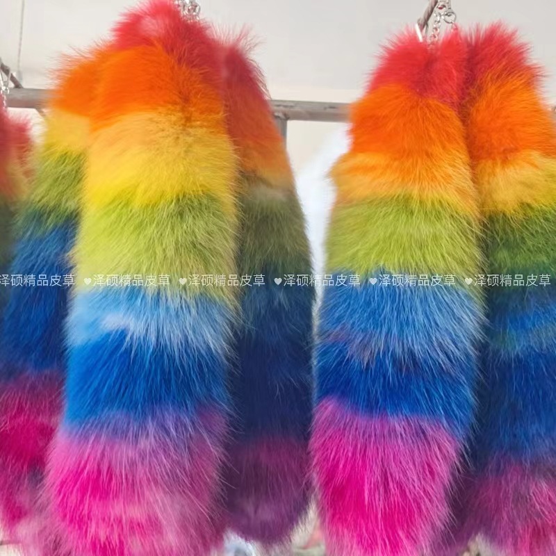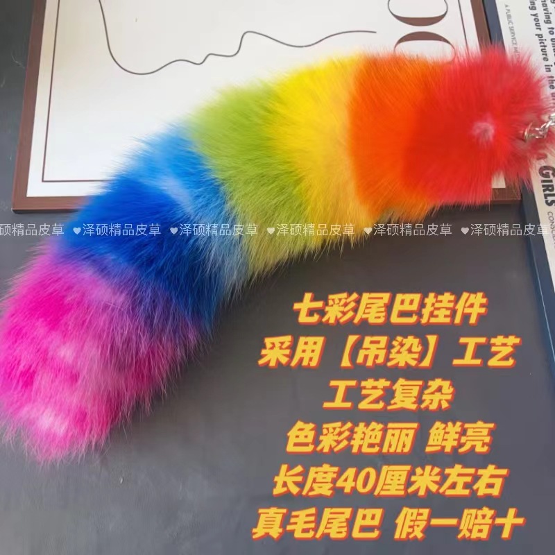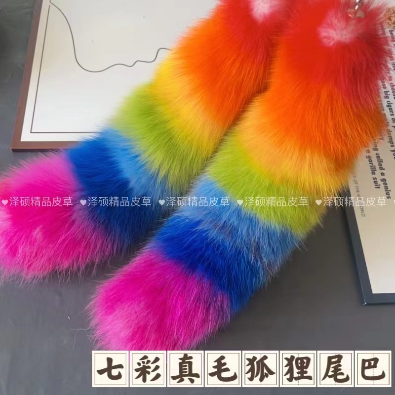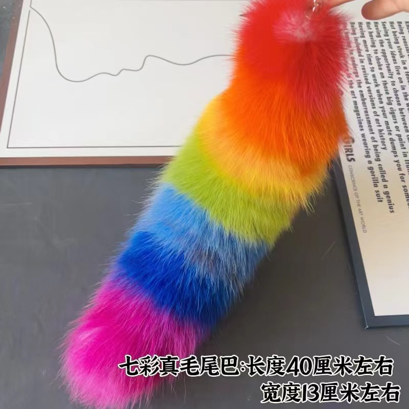 【かわいい大きなしっぽ】本物のキツネの毛のカラーのしっぽの自動車のキーホルダーのペンダントのぬいぐるみのバッグのペンダント