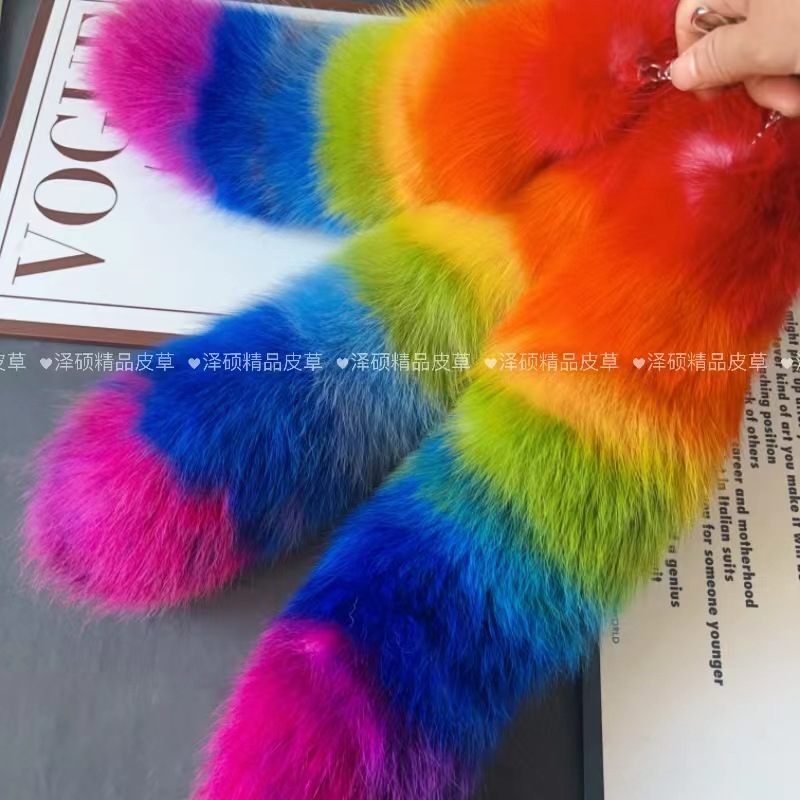 本物のキツネの毛の上着の袖口のコートは皮を整えます。