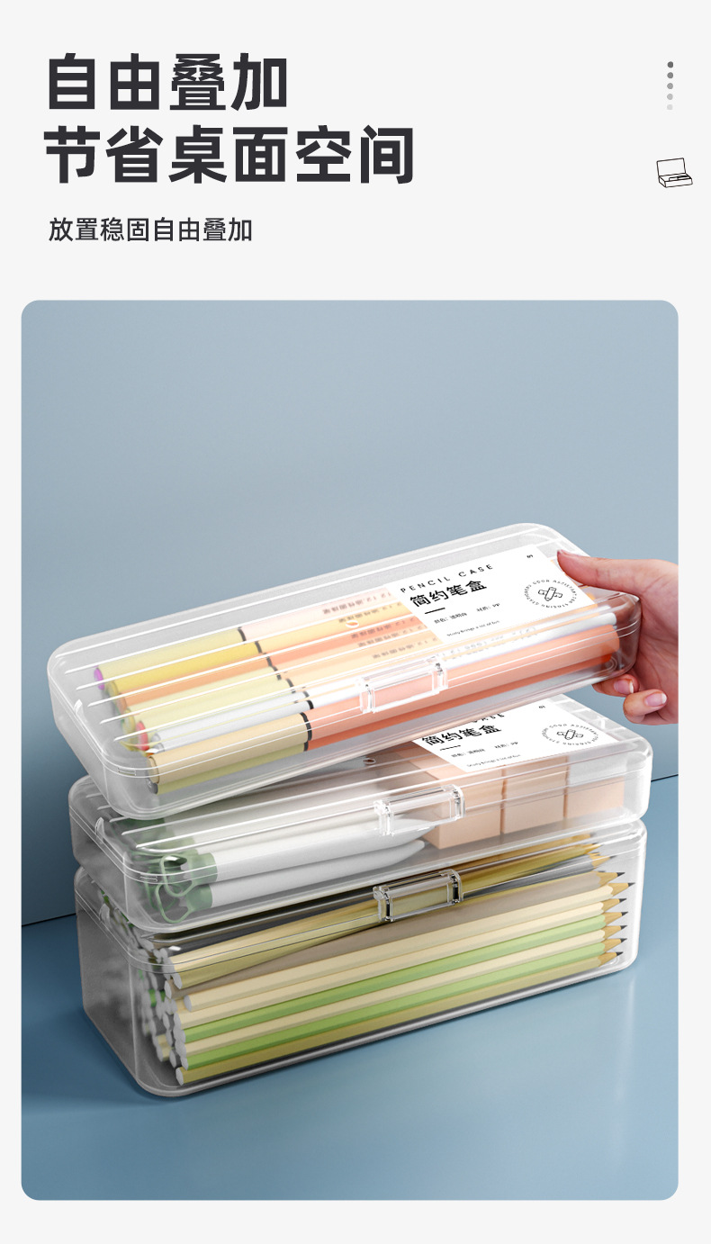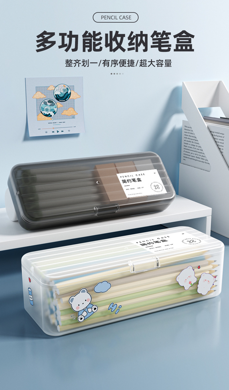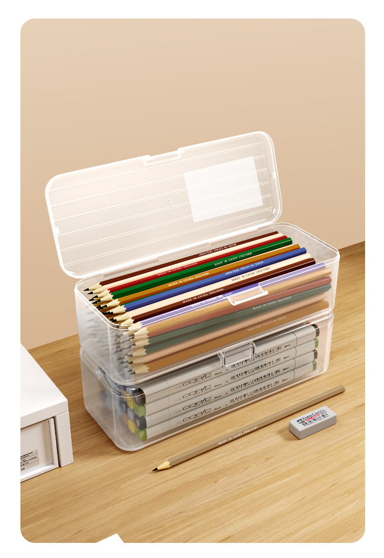 透明文房具ボックス子供プラスチッククレヨン铅笔カラーペン収纳ボックス大容量ペン袋デスクトップ学生ペンボックス