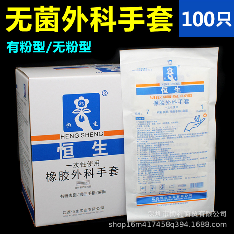 恒生医療用外科手術手袋使い捨て無菌手袋ラテックスゴム手袋医療用クラス独立包装