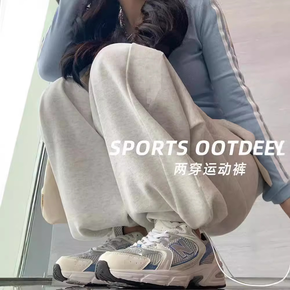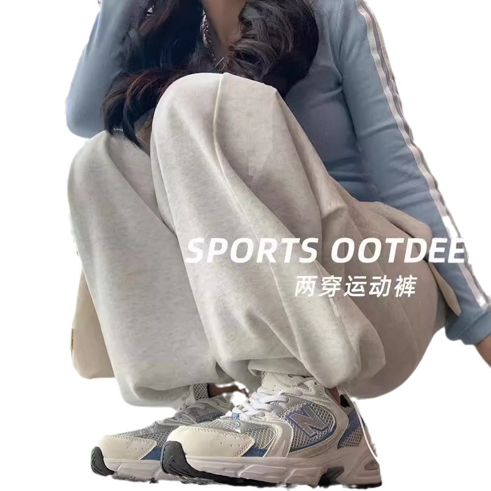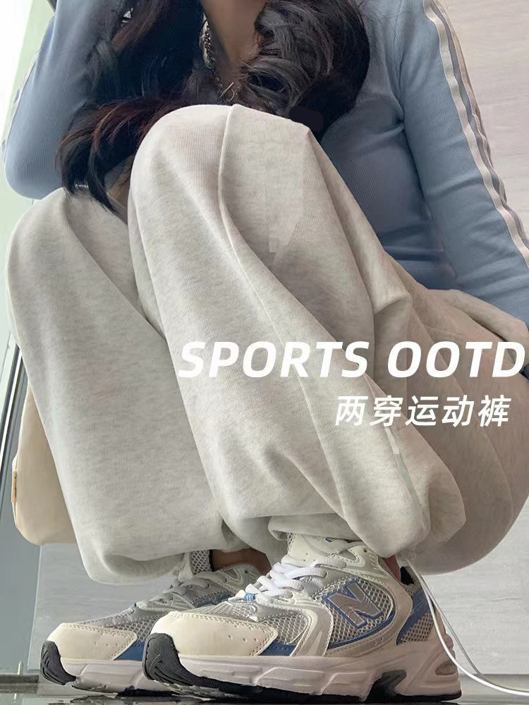白灰色のアメリカンスポーツズボンの女性は春秋2025の新型のゆったりしているストレートのカジュアルな衛のズボンの小さい背の広い足のズボンです。