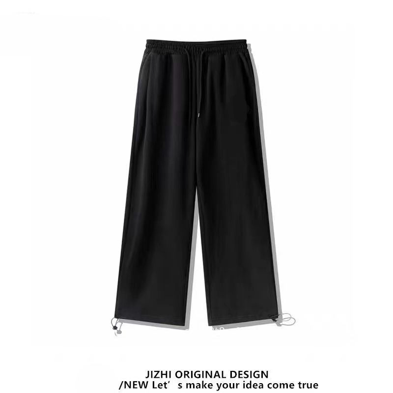 灰色のスポーツズボンの女性の夏の2024の新型のハイウエストのカジュアルなゆったりしたストレートの広腿のズボンの小さい子供の束の足の衛のズボン