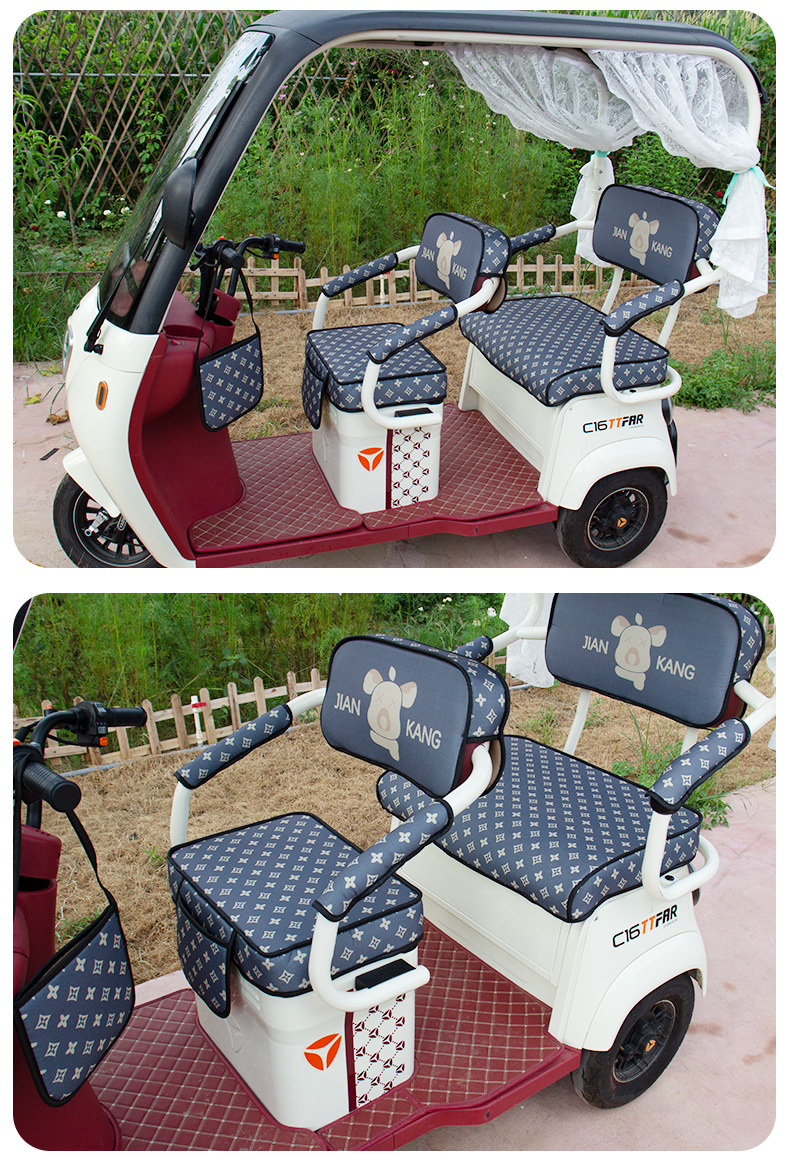 電動三輪車は冬に座席を厚くして保温して前後の座席を厚くして汎用三輪車の座布団を組み合わせる