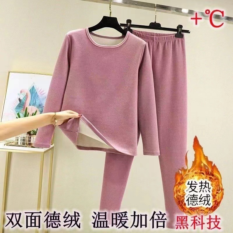 制服神器冬ベルベット保温下着セット男性徳絨羊小毛秋衣秋ズボン女性卸売り
