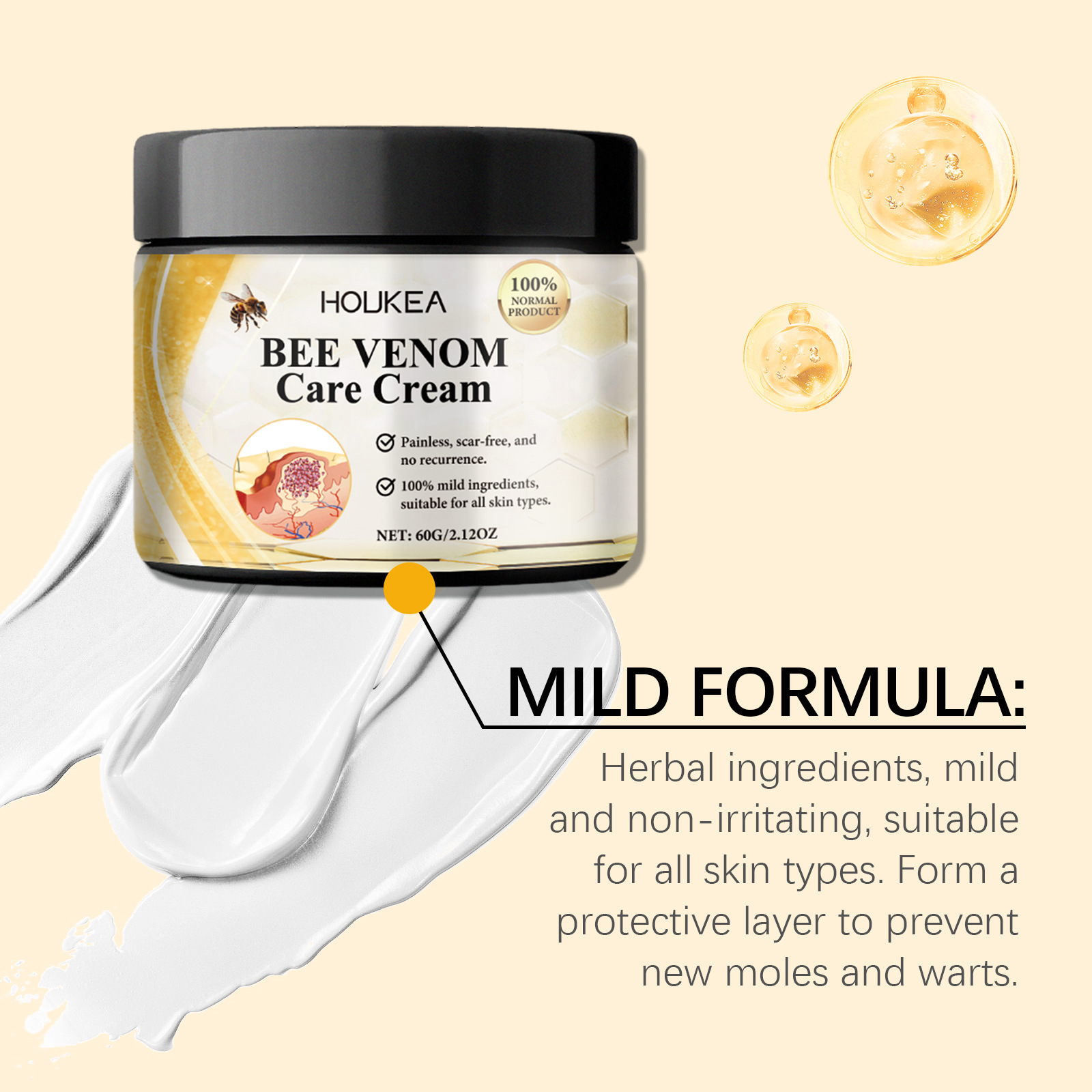 HOUKEA蜂毒皮膚ケアクリーム温和処方栄養清潔な体の皮膚のなめらかな肌ケアクリーム