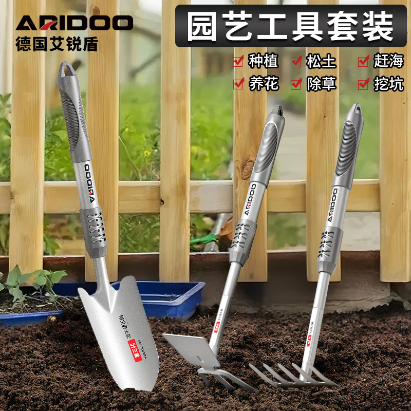 代发艾锐盾园艺铲子套装种菜养花挖沙锄头赶海耙全套工具翻土