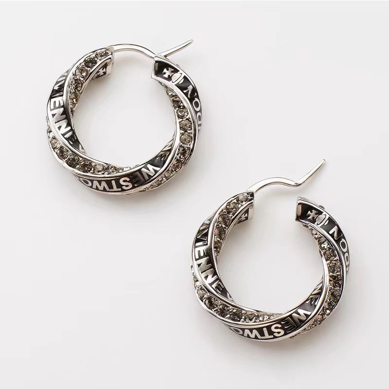 西太后のヴィヴィアンのビビアンのエナメルのフルダイヤモンドの土星の耳のイヤリングのシルバーピアスの大衆の気質のデザイン感