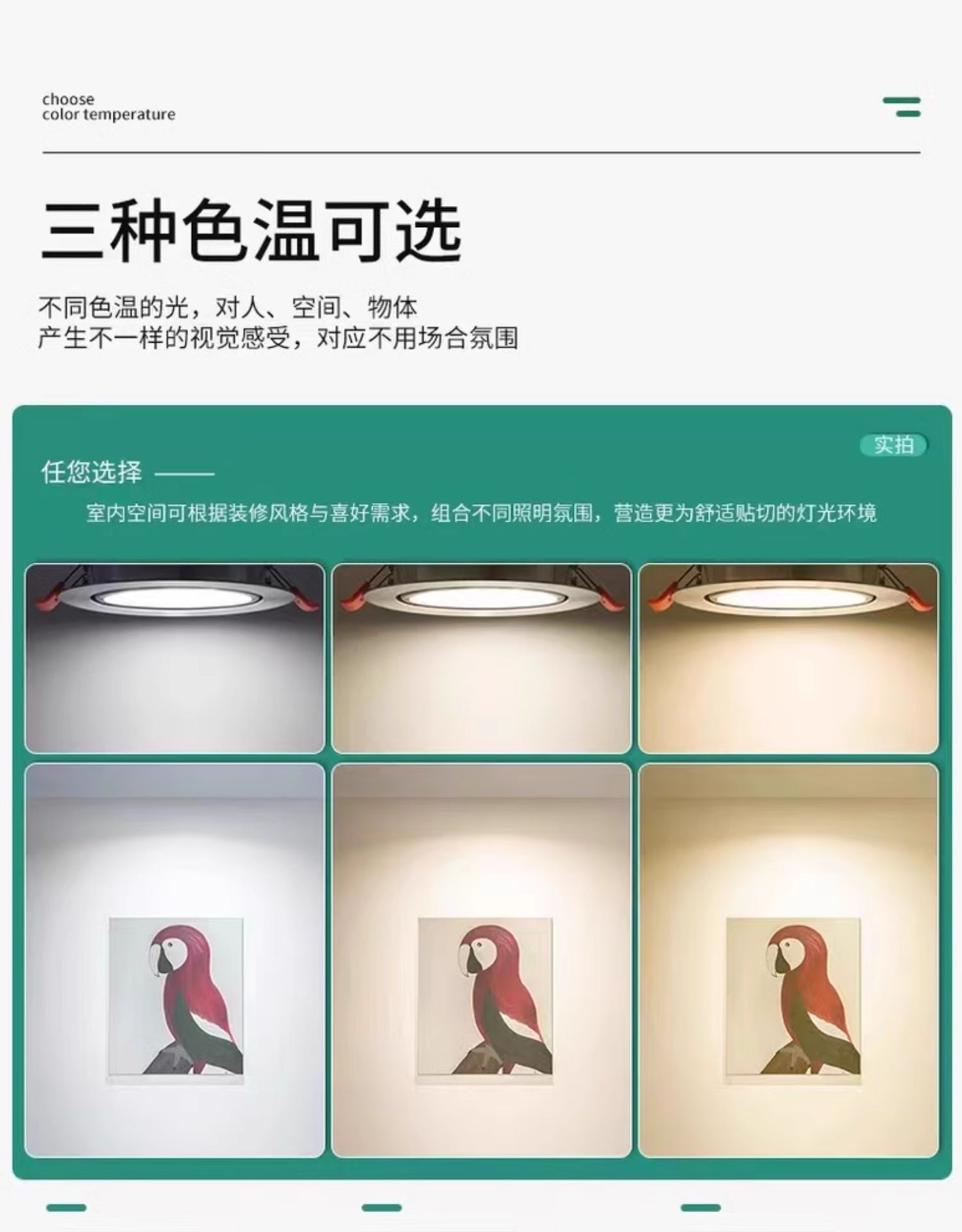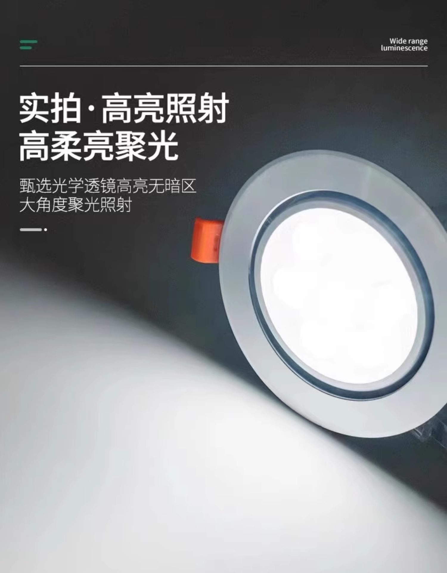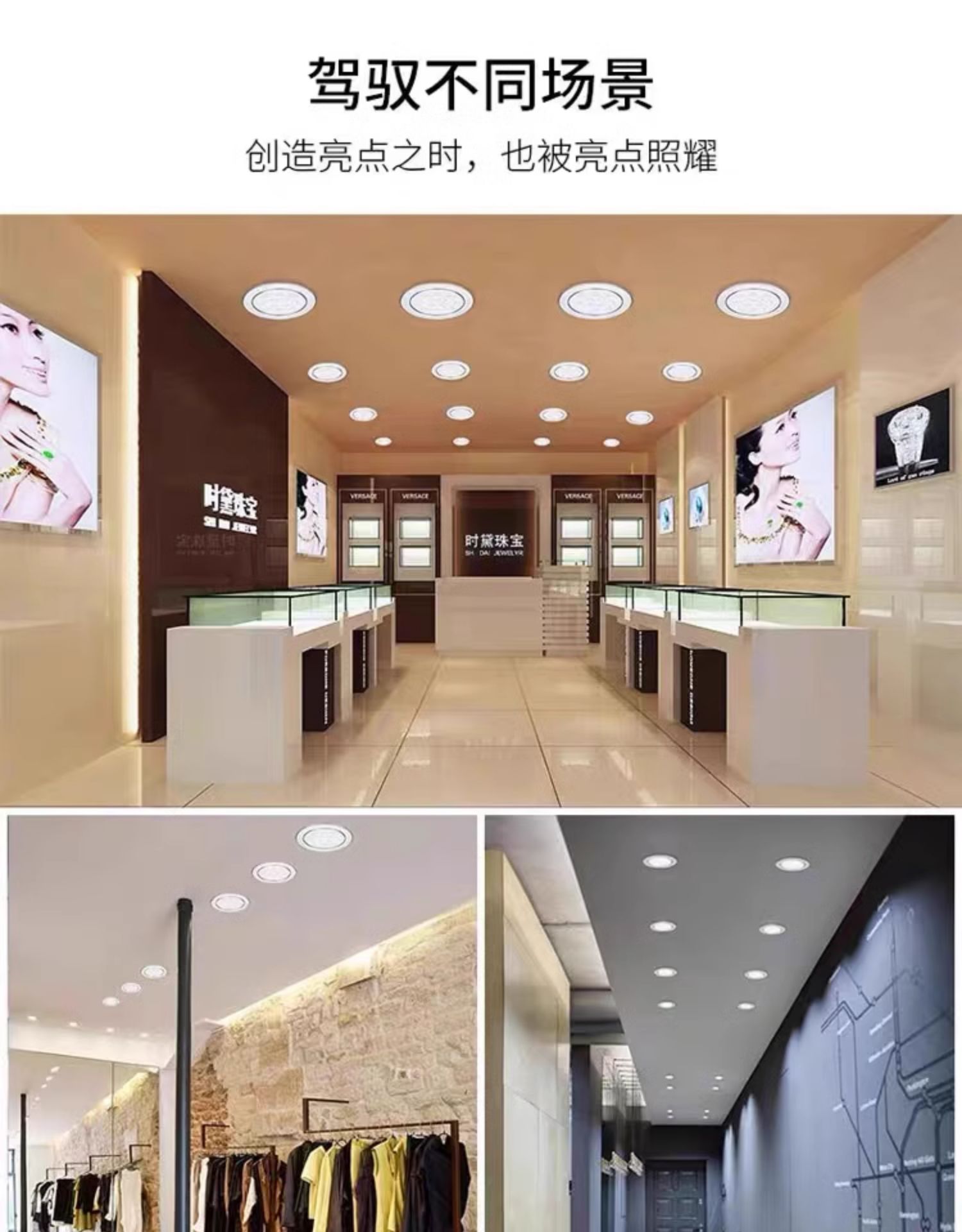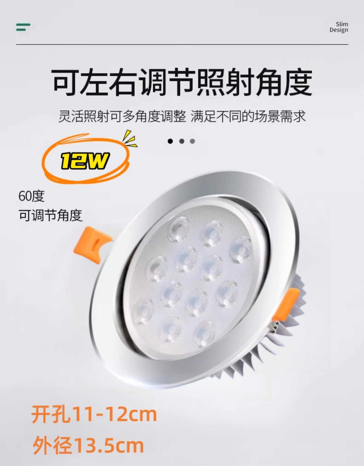 功率 小3W外径64.5开孔55mm,3W升级款外径84.5开孔75mm,5W升级款外径105开孔95mm,7W升级款外径105开孔95mm,9W升级款外径138开孔120mm,12W升级款外径138开孔120mm,15W升级款外径158开孔140mm,18W升级款外径158开孔140mm
