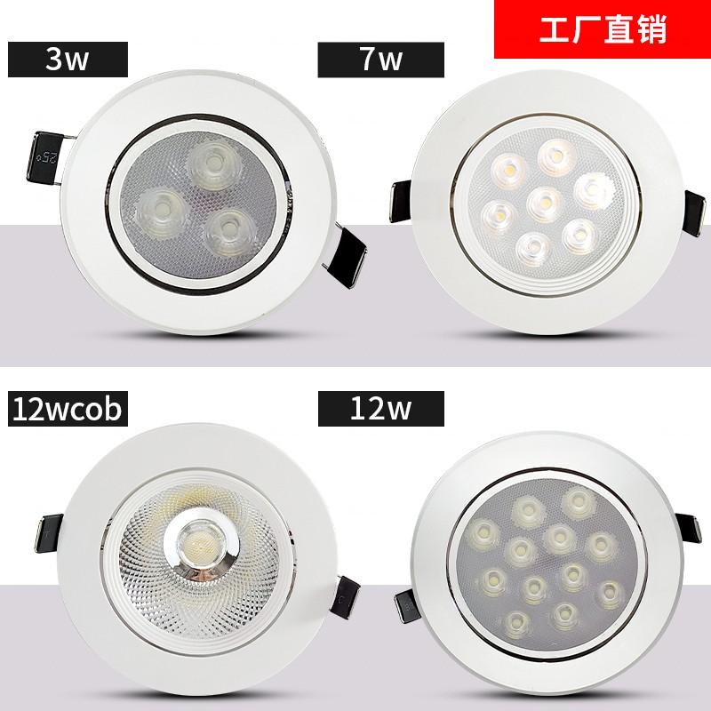 射灯LED天花灯嵌入式COB家用孔筒灯3W7W店铺商用大功率超亮高显色