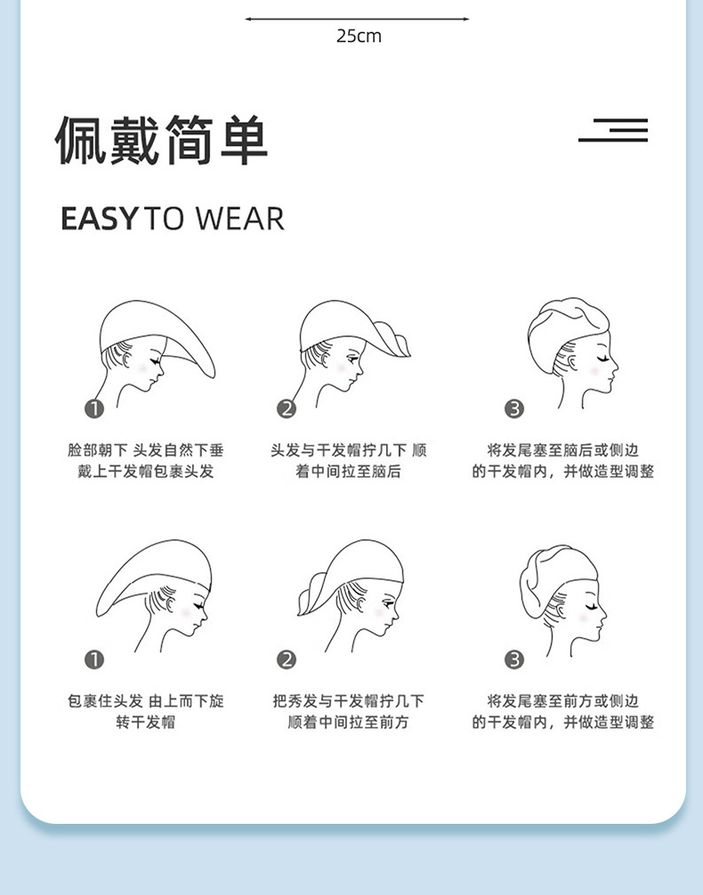 女性用使い捨てヘアドライキャップ、吸水速乾ターバン、増粘ヘアドライキャップ、ソフトヘアドライタオル、出張ヘアドライ