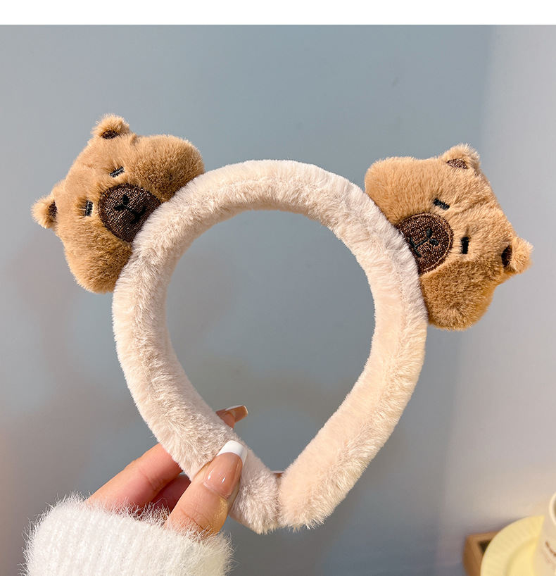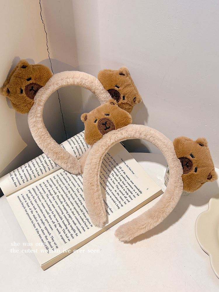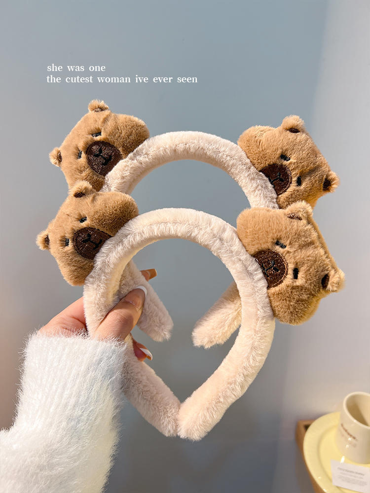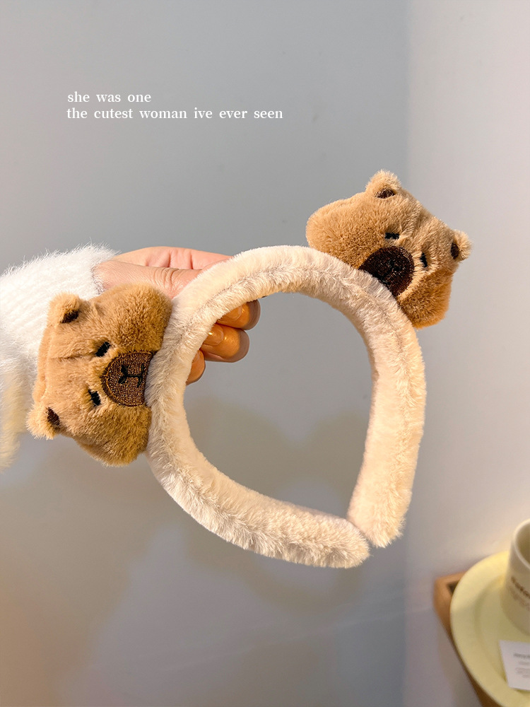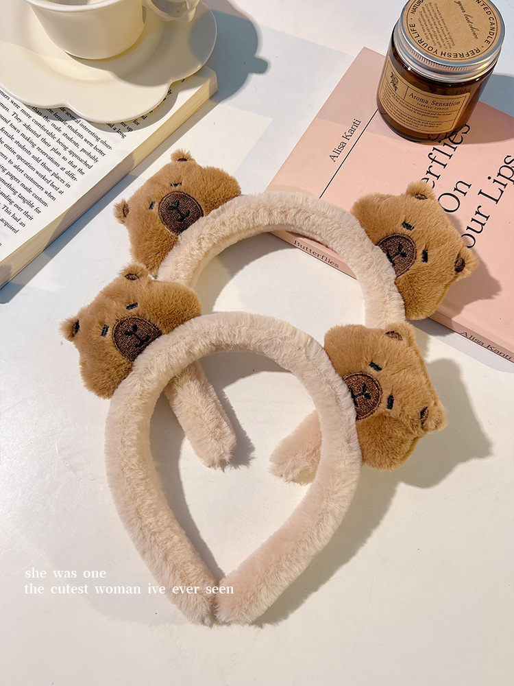 新しいダブルヘッドのぬいぐるみのカピバラのカチューシャの女性は顔を洗ってかわいいです。