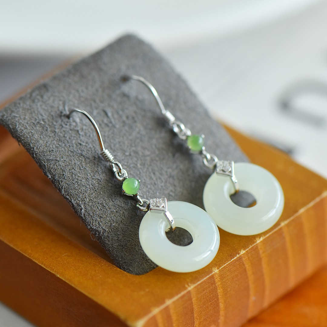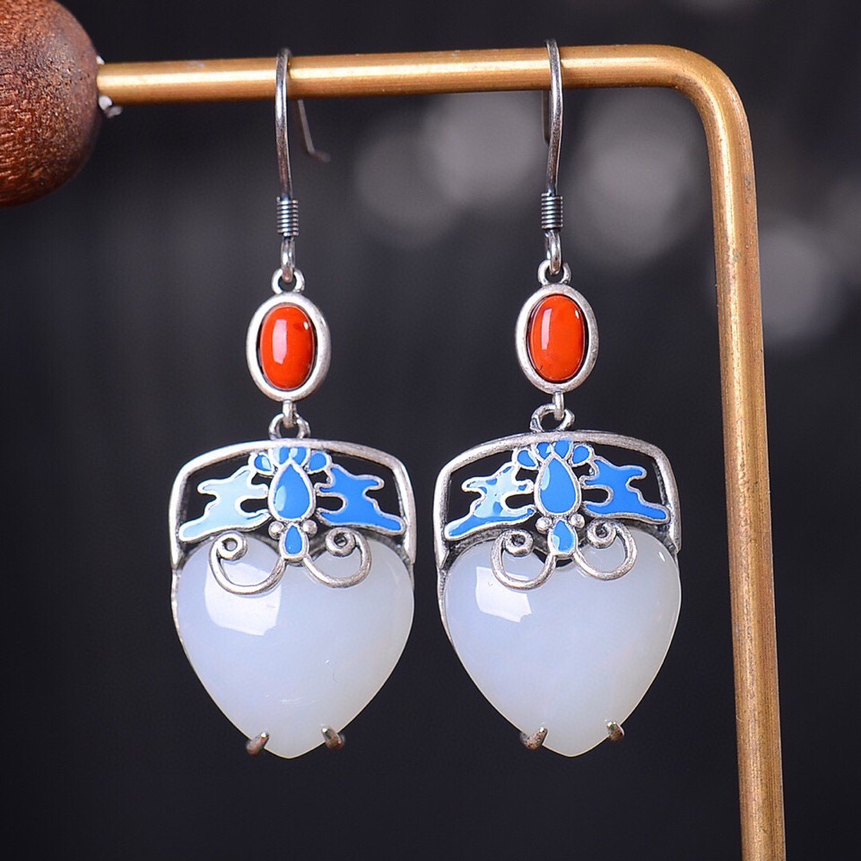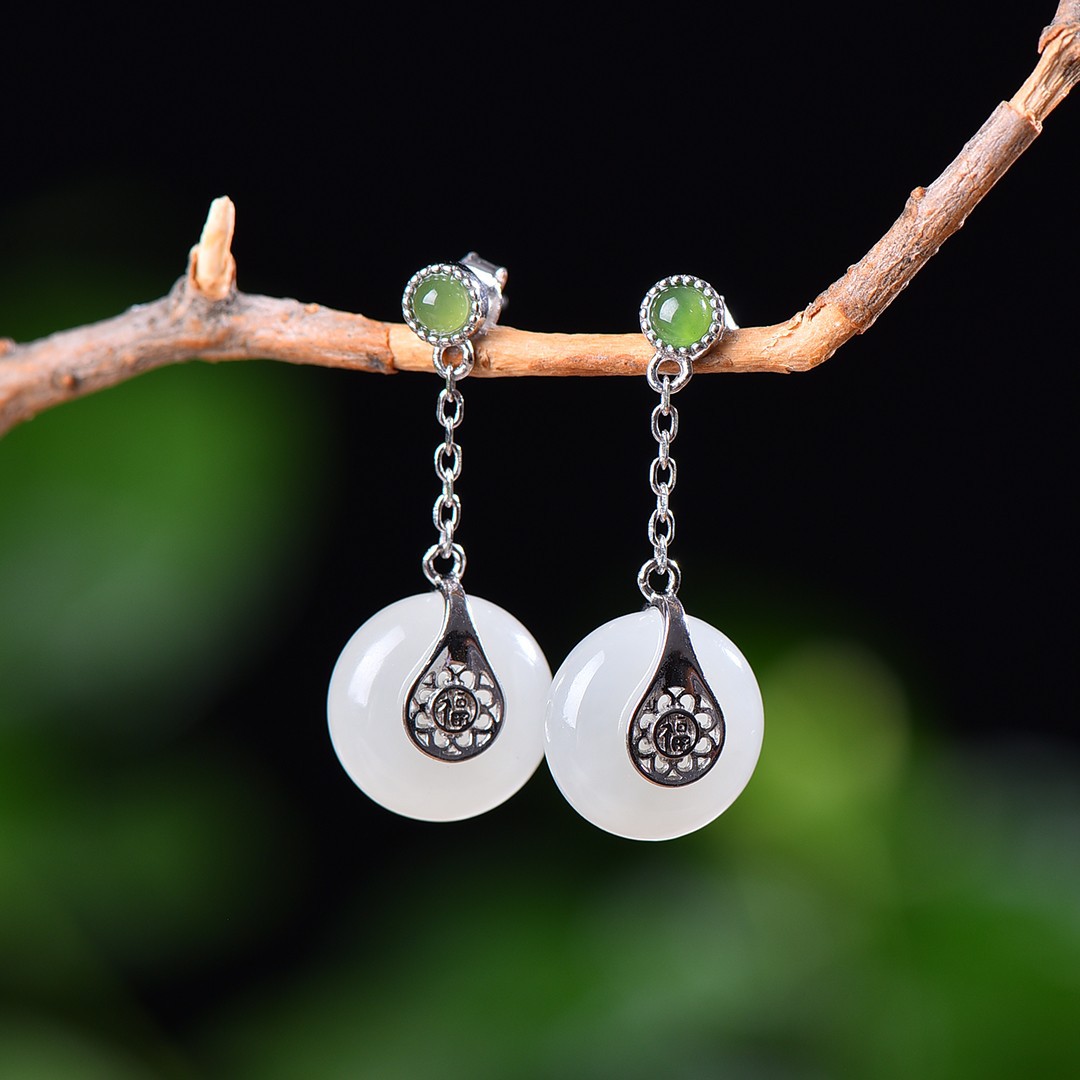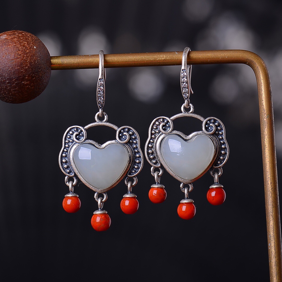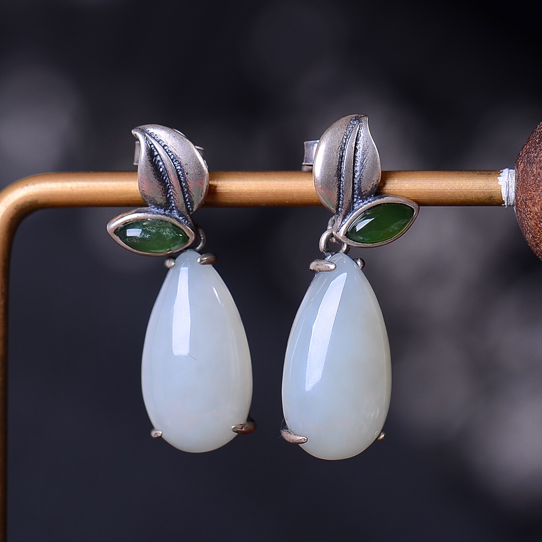 S925銀は和田玉水滴をはめ込んでいる. 平安ボタンのイヤリングと田玉の復古ハート型の美しいイヤリング