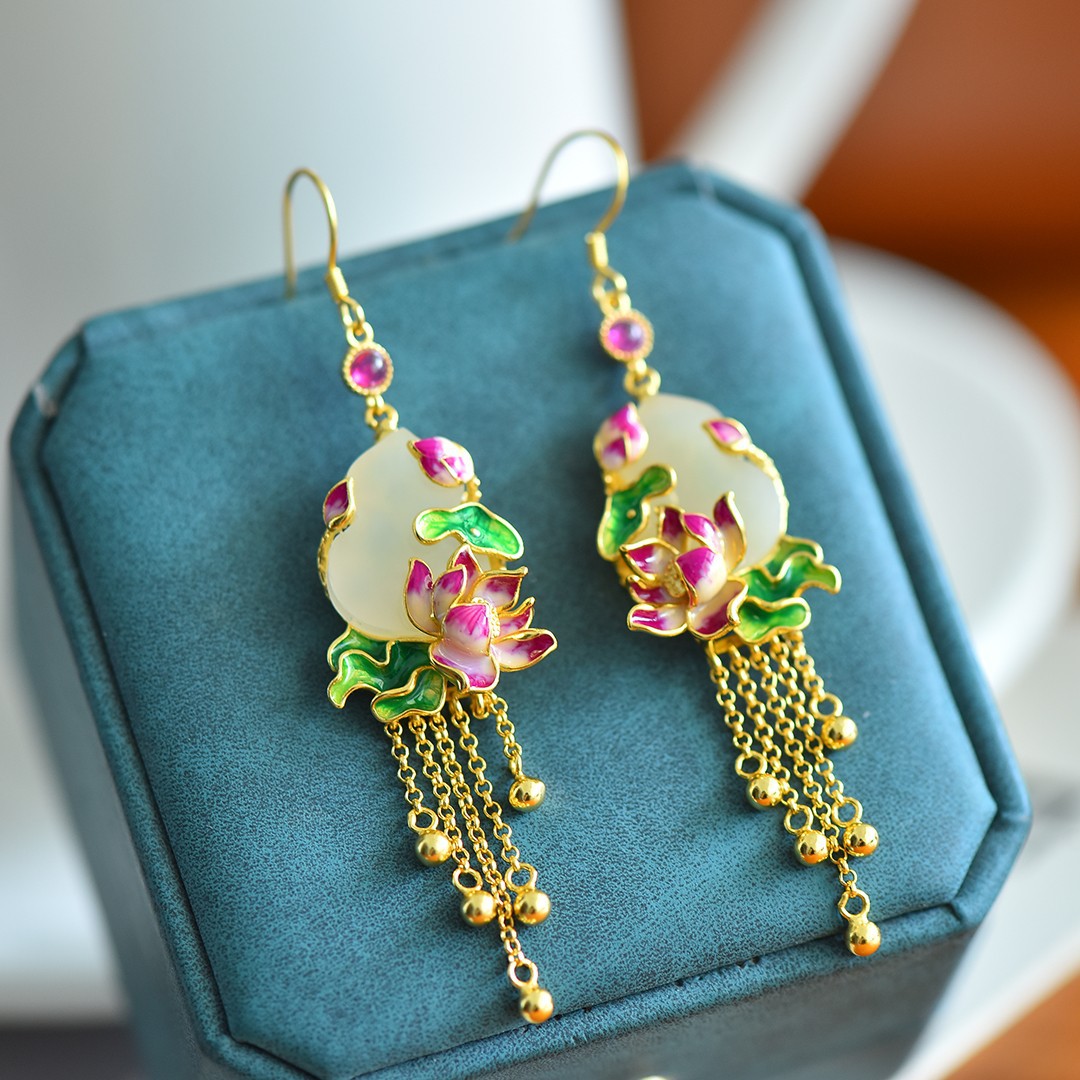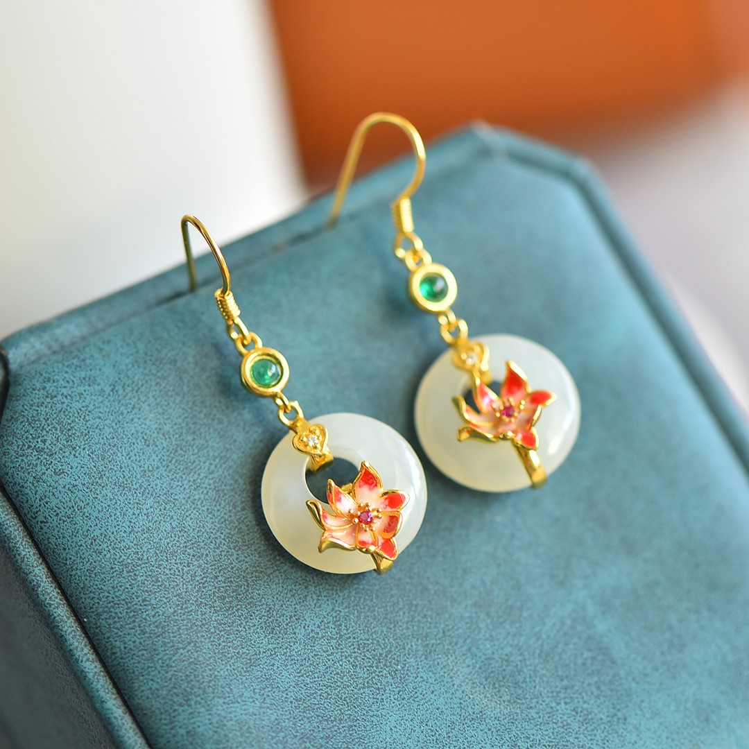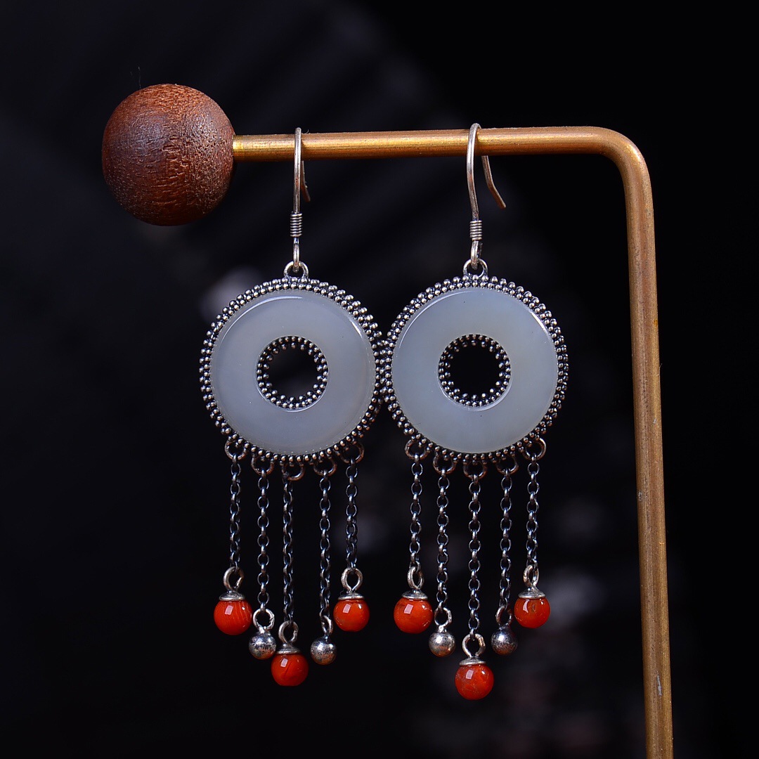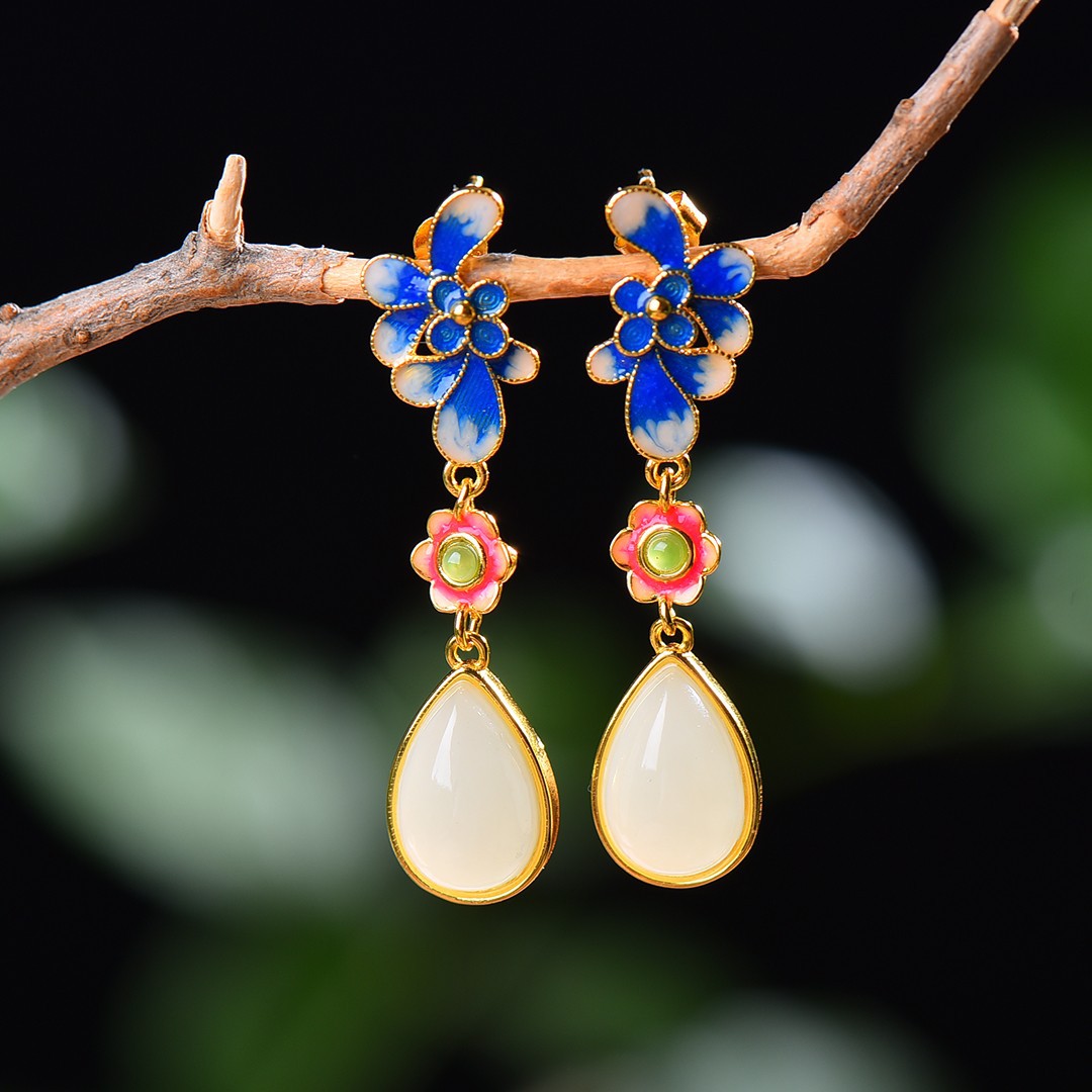 S925銀は和田玉水滴をはめ込んでいる. 平安ボタンのイヤリングと田玉の復古ハート型の美しいイヤリング