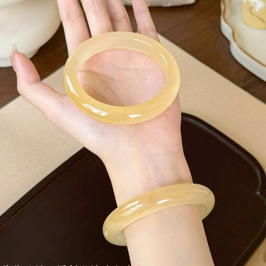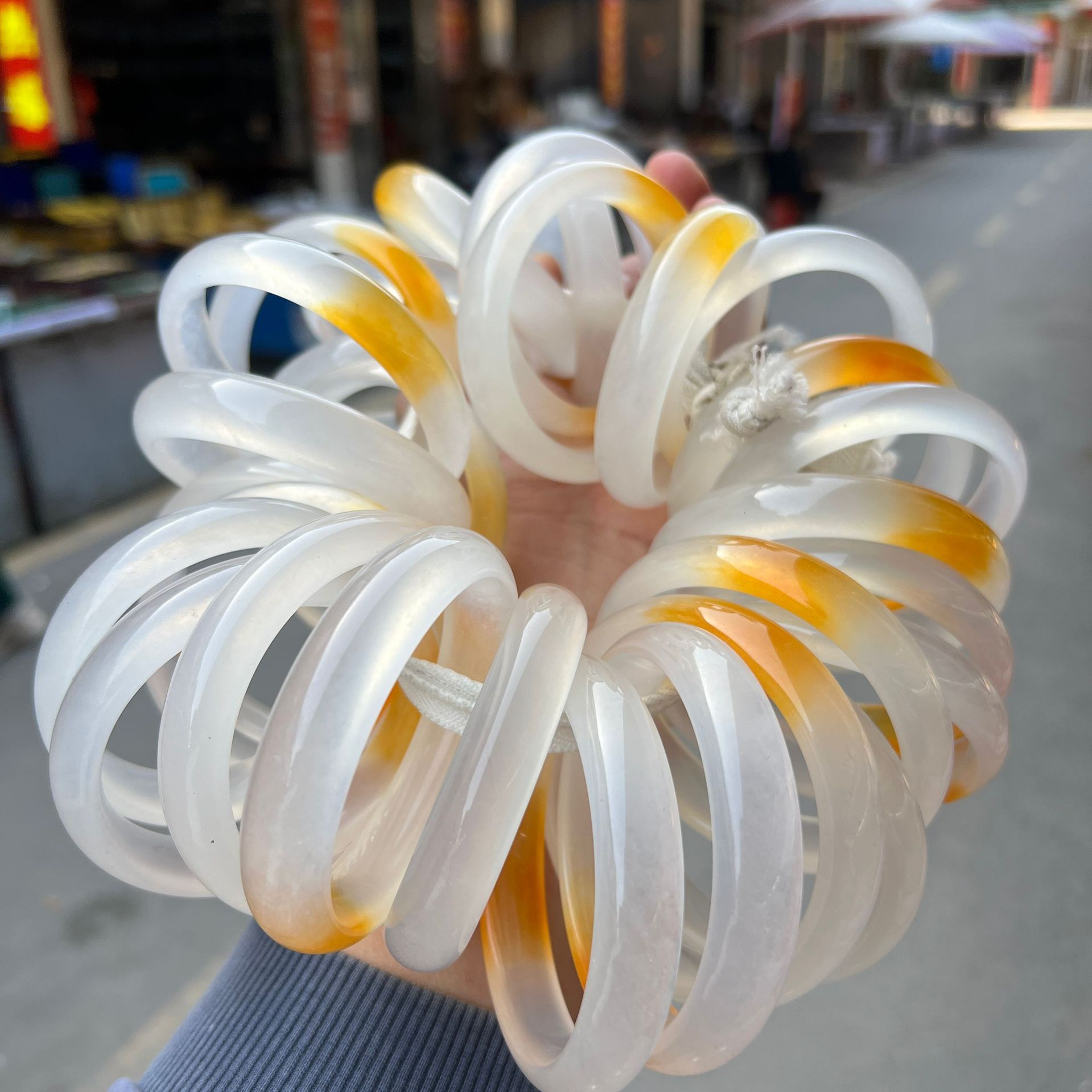 高氷種一口糖ブレスレット半山水玉瑪瑙玉髄石英岩白黄二色プレゼント女