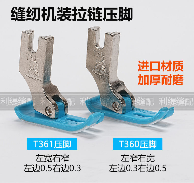 【ブルー】T360左狭い右幅押え革平車上ファスナー押え足底0.3 t361オックスフォード底板