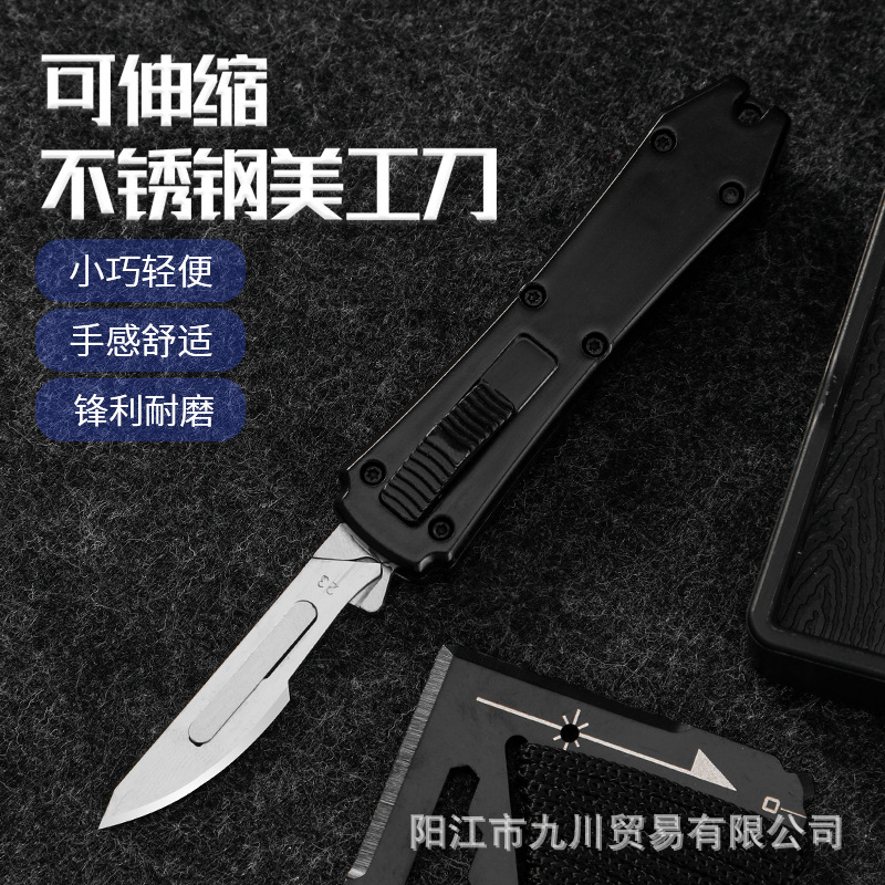 マイクロ技術伸縮美工刀CNCアルミニウム合金ミニ屋外多機能鋭利なポケット刀はブレードを取り替えることができます。