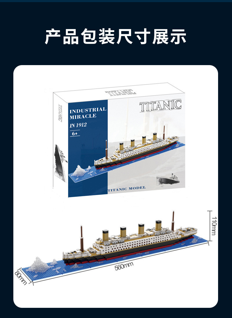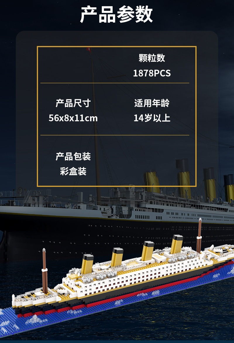 兼容乐高泰坦尼克号积木巨大型邮轮模型高难度微颗粒男孩拼装玩具