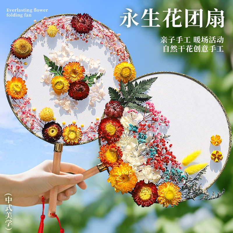 うちわdiyは自分で古風の乾いた花の材料を作って手作りします。