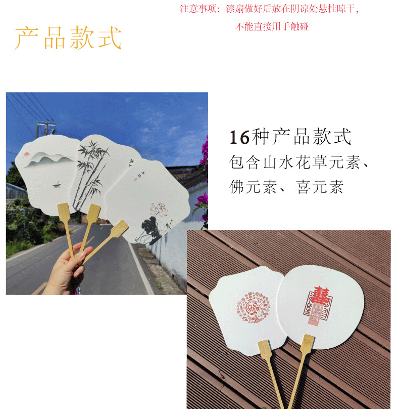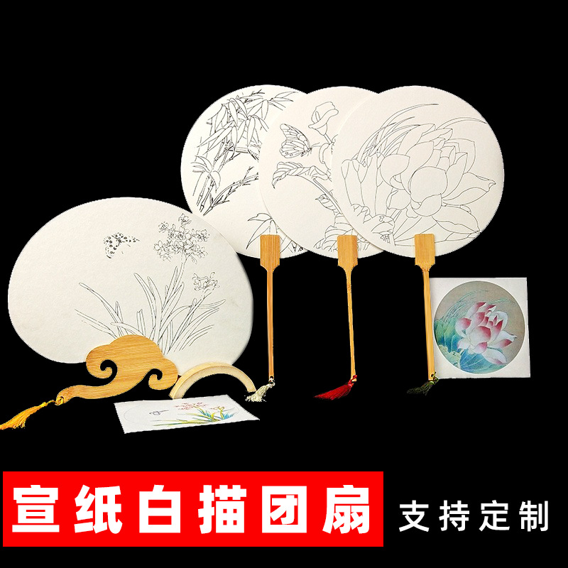 塗装専用宣紙団扇水墨画大漆中国式扇書道文創国画古風扇子旅行漆扇