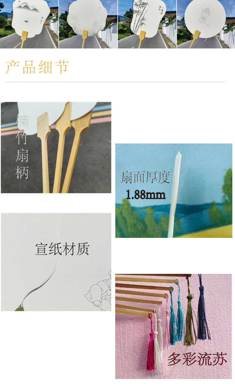 空白宣紙団扇扇面扇子柄流蘇中国中国画書道手描き厚手両面宣紙扇子卸売り