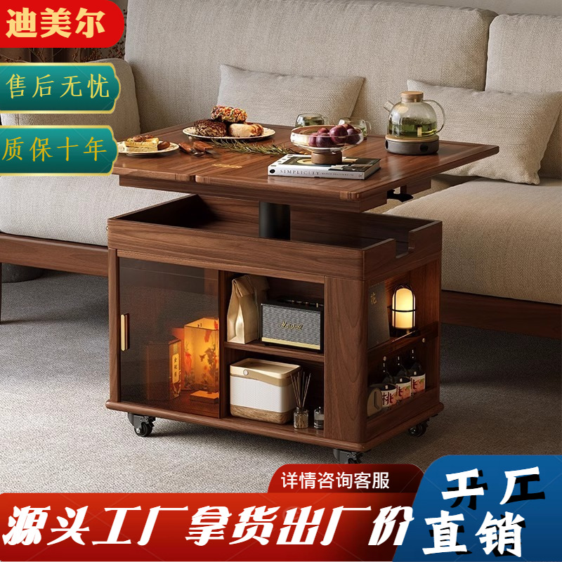 黒胡桃木昇降茶卓移動可能折り畳み式茶卓家庭用小戸型日本式多機能ソファーサイドテーブル