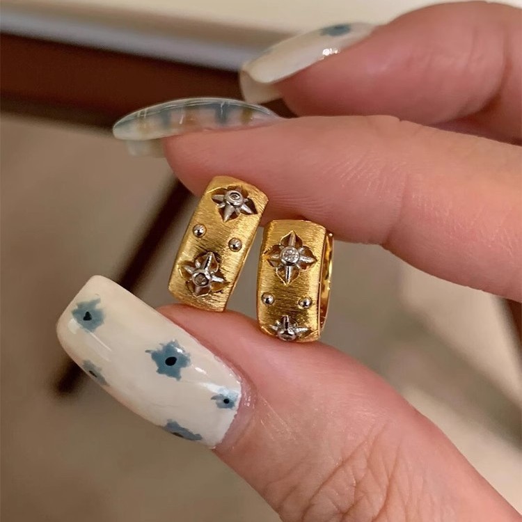 中世のゴールドブラッシュサークルイヤリング女性用ヴィンテージ絶妙なハイエンドイヤリングニッチデザインイヤリング