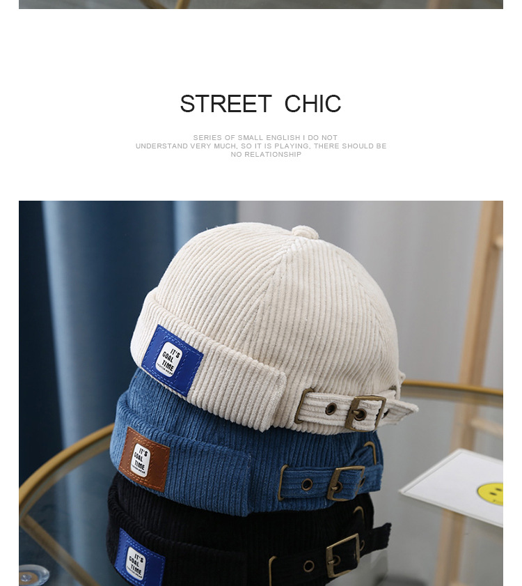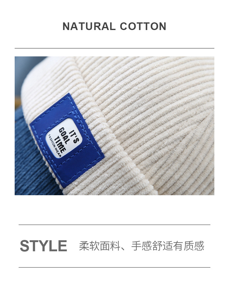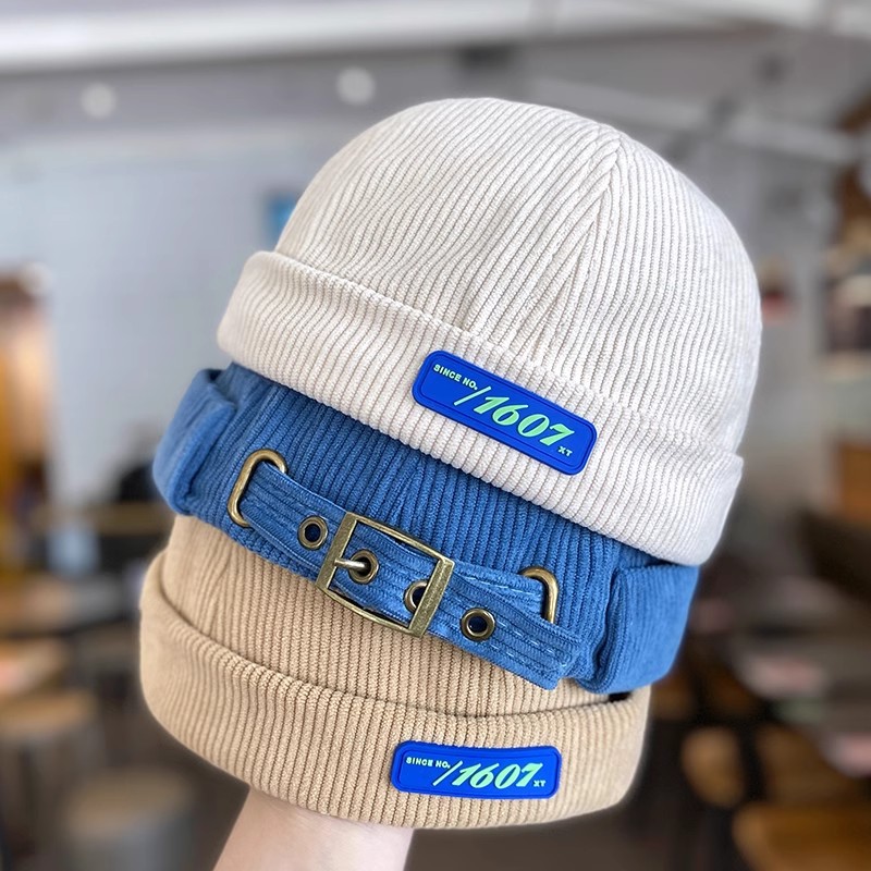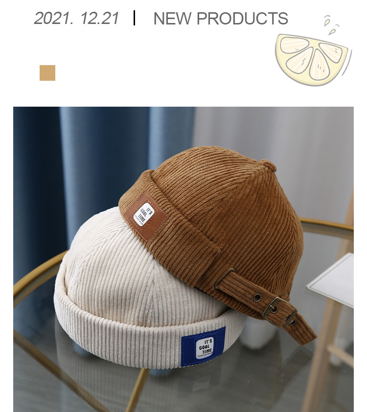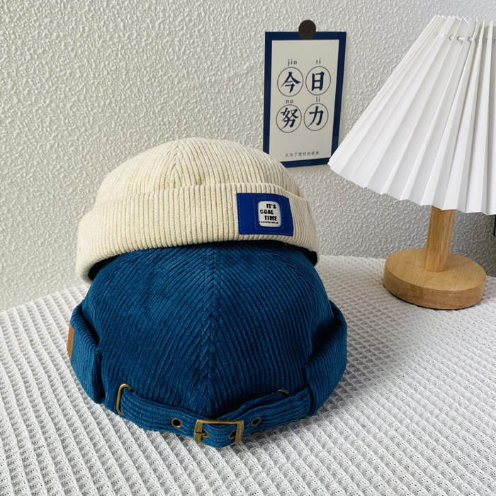 春と秋の男女モデルの日本のつばのないコーデュロイの毛皮の帽子