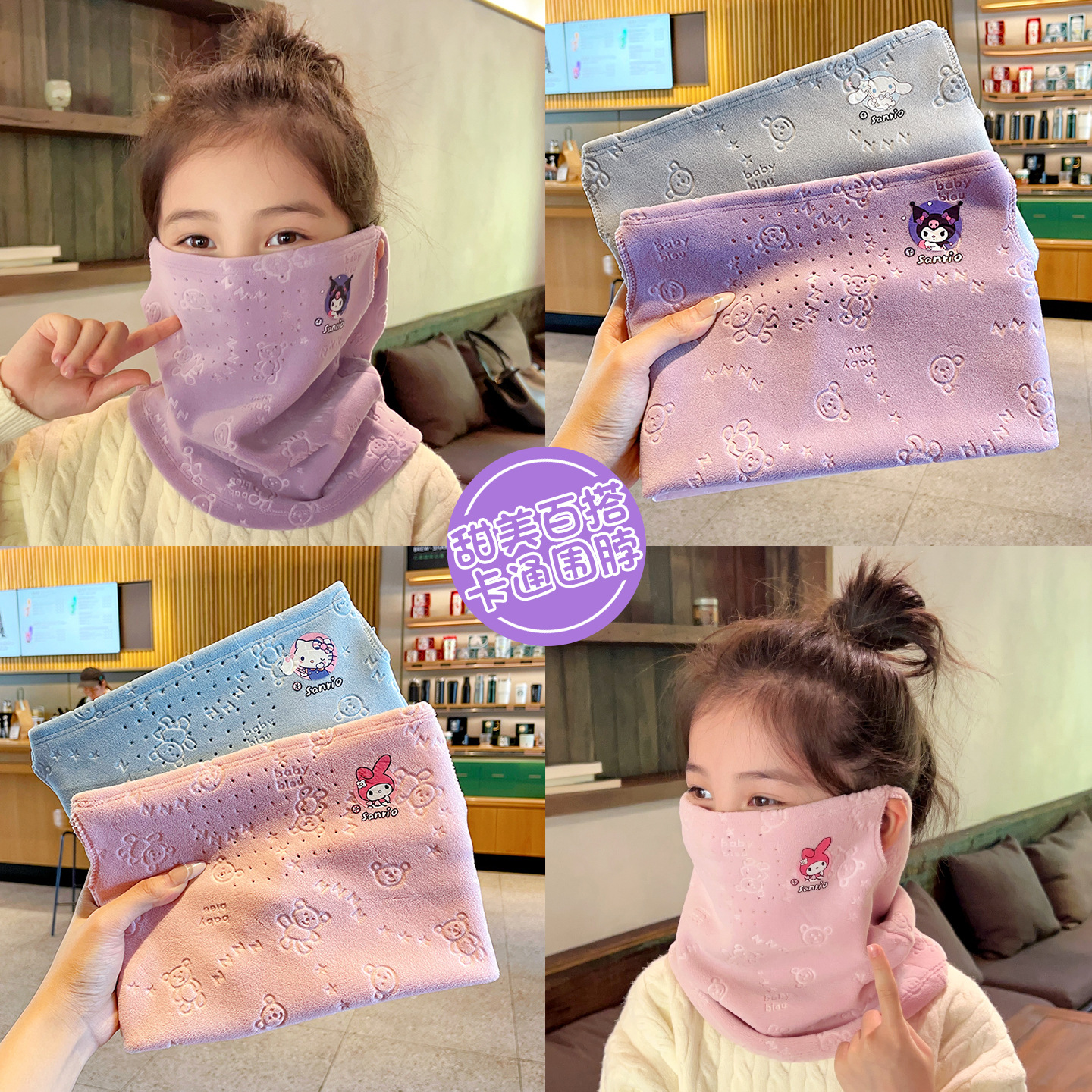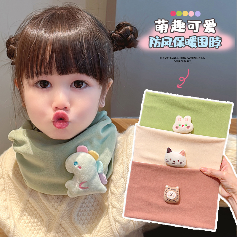 子供用マフラー保温防風アニメマフラー秋冬徳絨毛マフラー純色動物柔らかい首カバー新型
