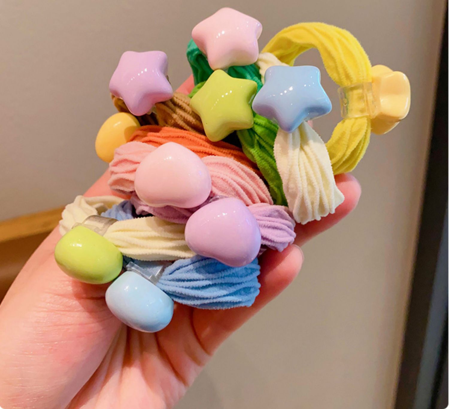 子供用キャンディーカラー高弾性タオルヘアゴム 女の子用ハイポニーテール 髪を傷めないゴム紐 女の子用ヘアロープ 新星