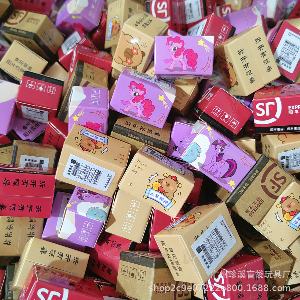 卡皮巴拉盲盒带玩具卡通可爱箱盒微缩食玩摆件迷你包裹纸盒盲盒